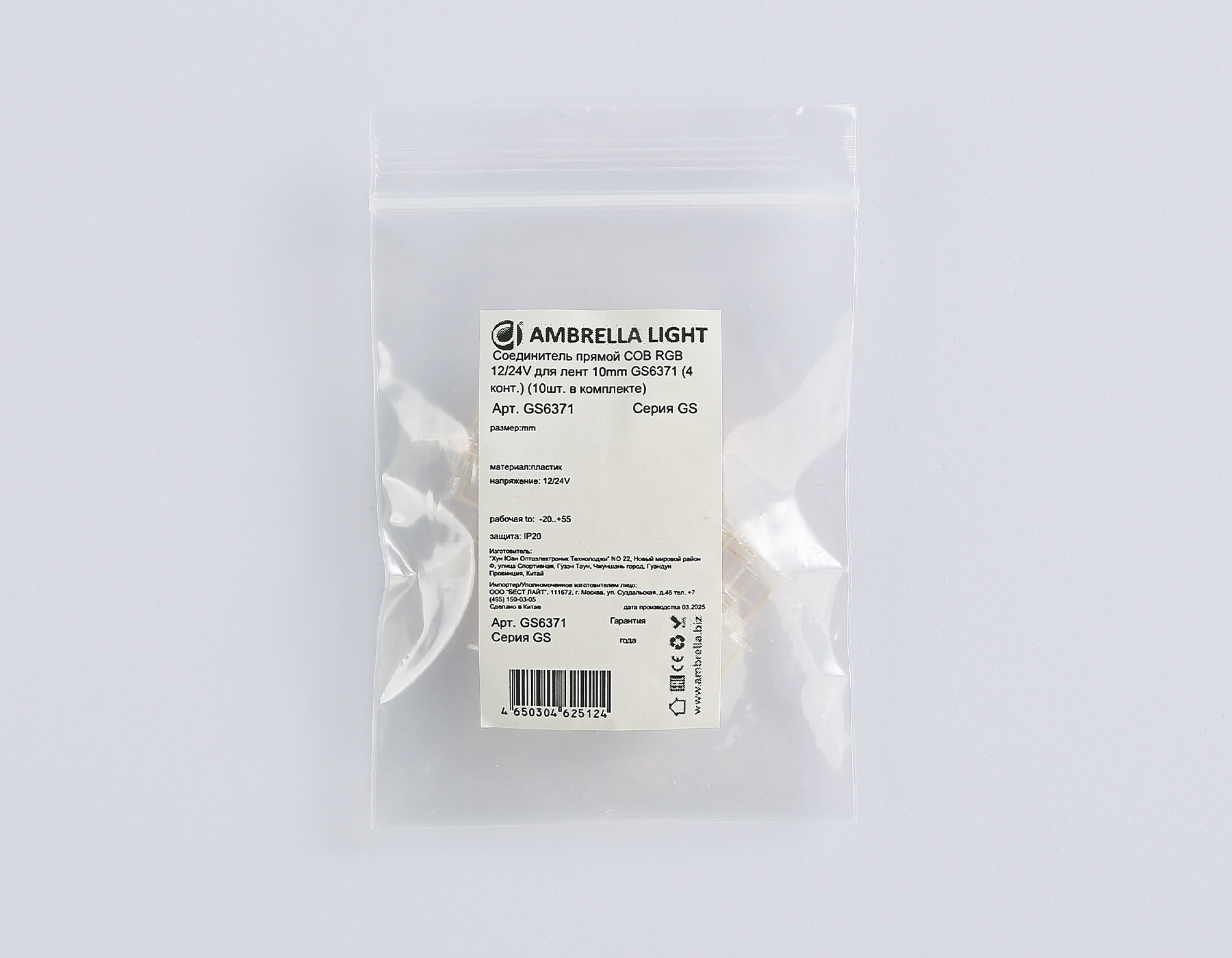 Соединитель прямой COB RGB 12/24V для лент 10mm GS6371 (4 конт.) (10шт. в комплекте)
