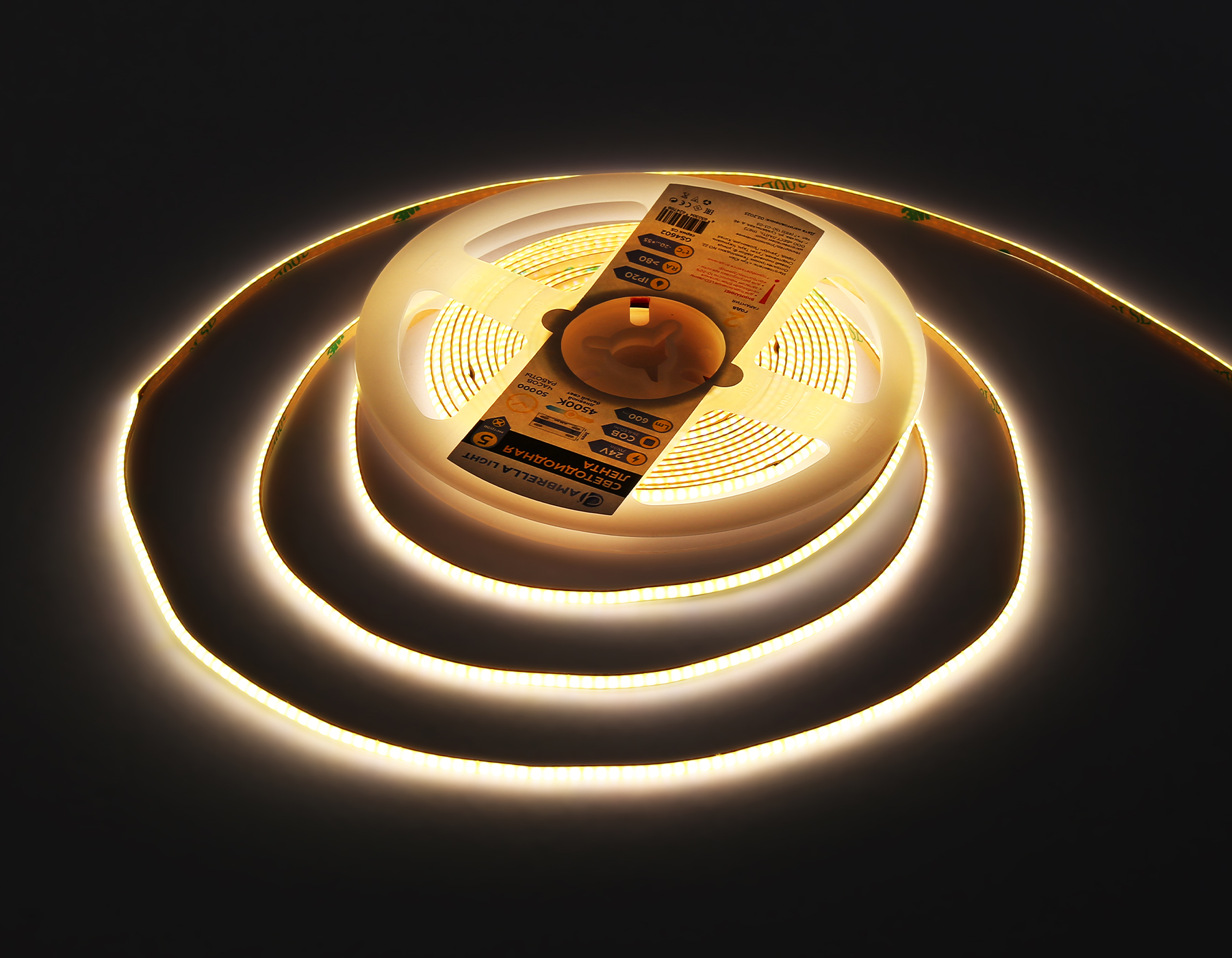 Светодиодная лента Ambrella Light GS4602 COB 384Led/ 7W m/ 24V IP20 4500K/ 5m*3mm*2mm (2 конт.)