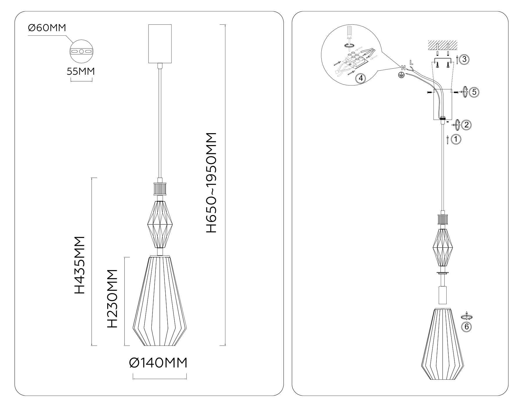 Подвесной светильник с керамикой