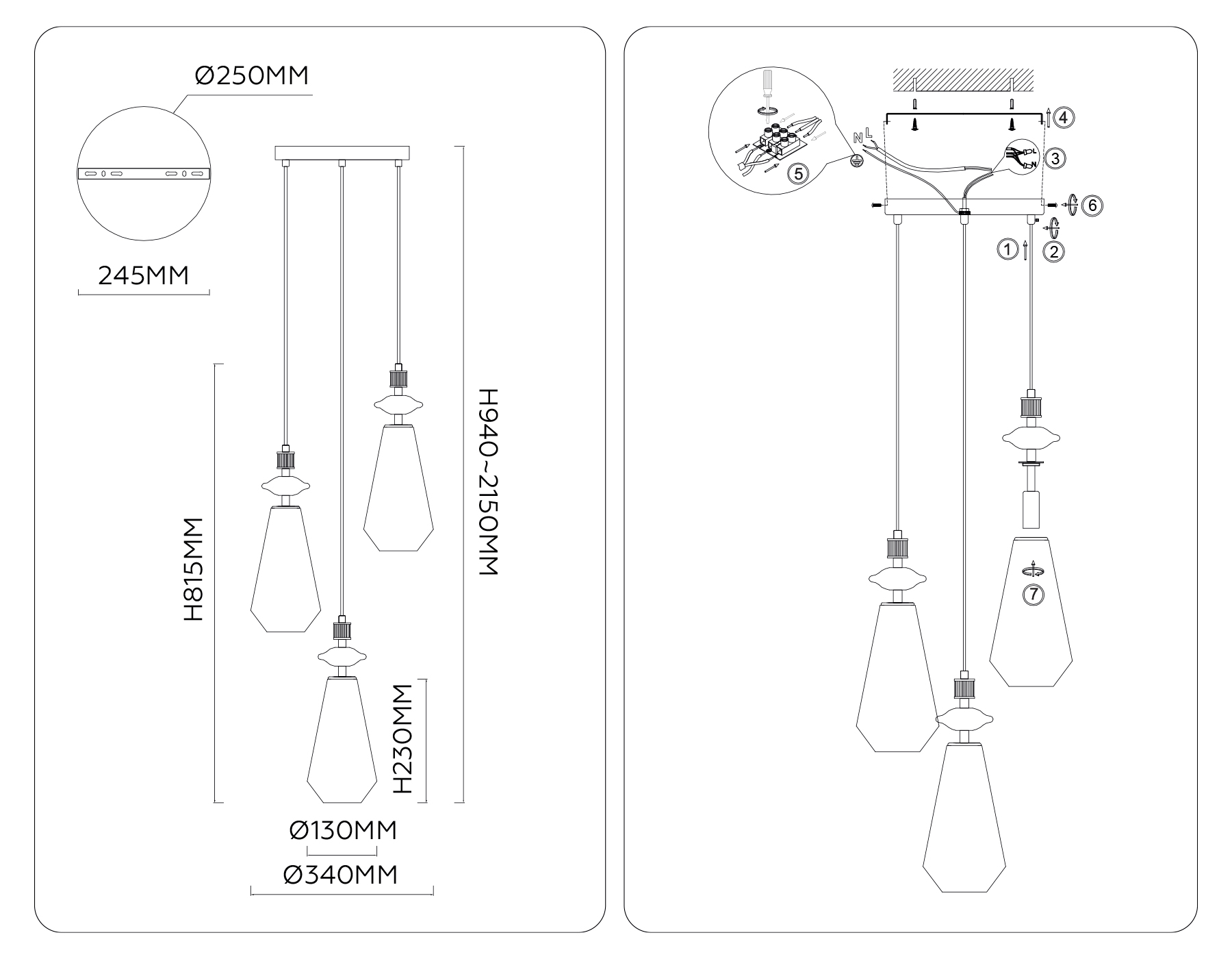 - Высота люстры с тросом: