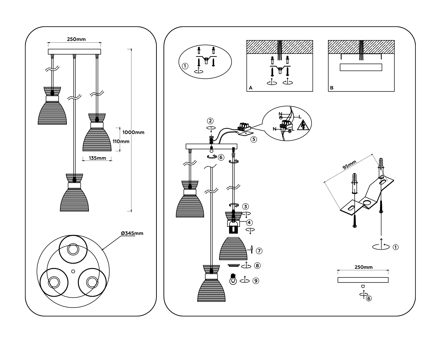 Светильник подвесной со стеклянными плафонами