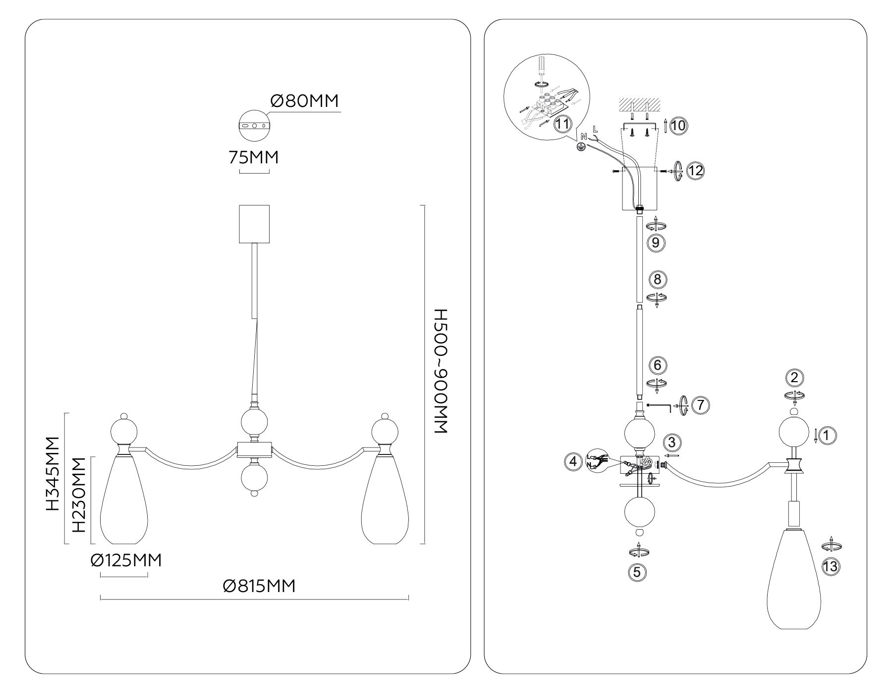 - Высота люстры с тросом: