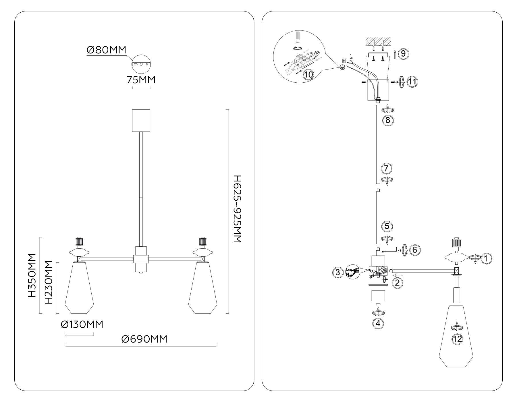 - Высота люстры с тросом: