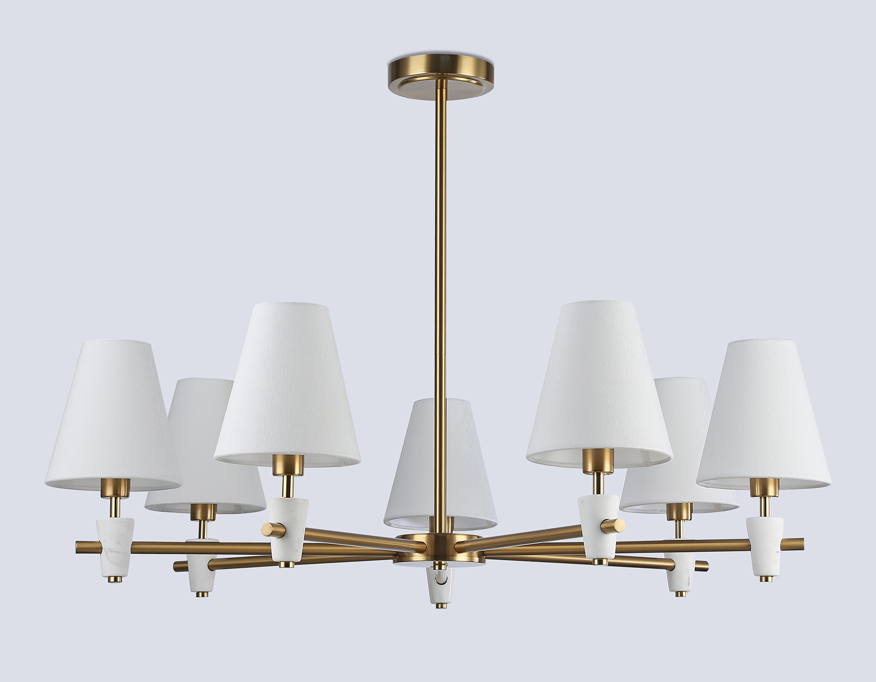 Люстра на штанге с абажурами и мрамором