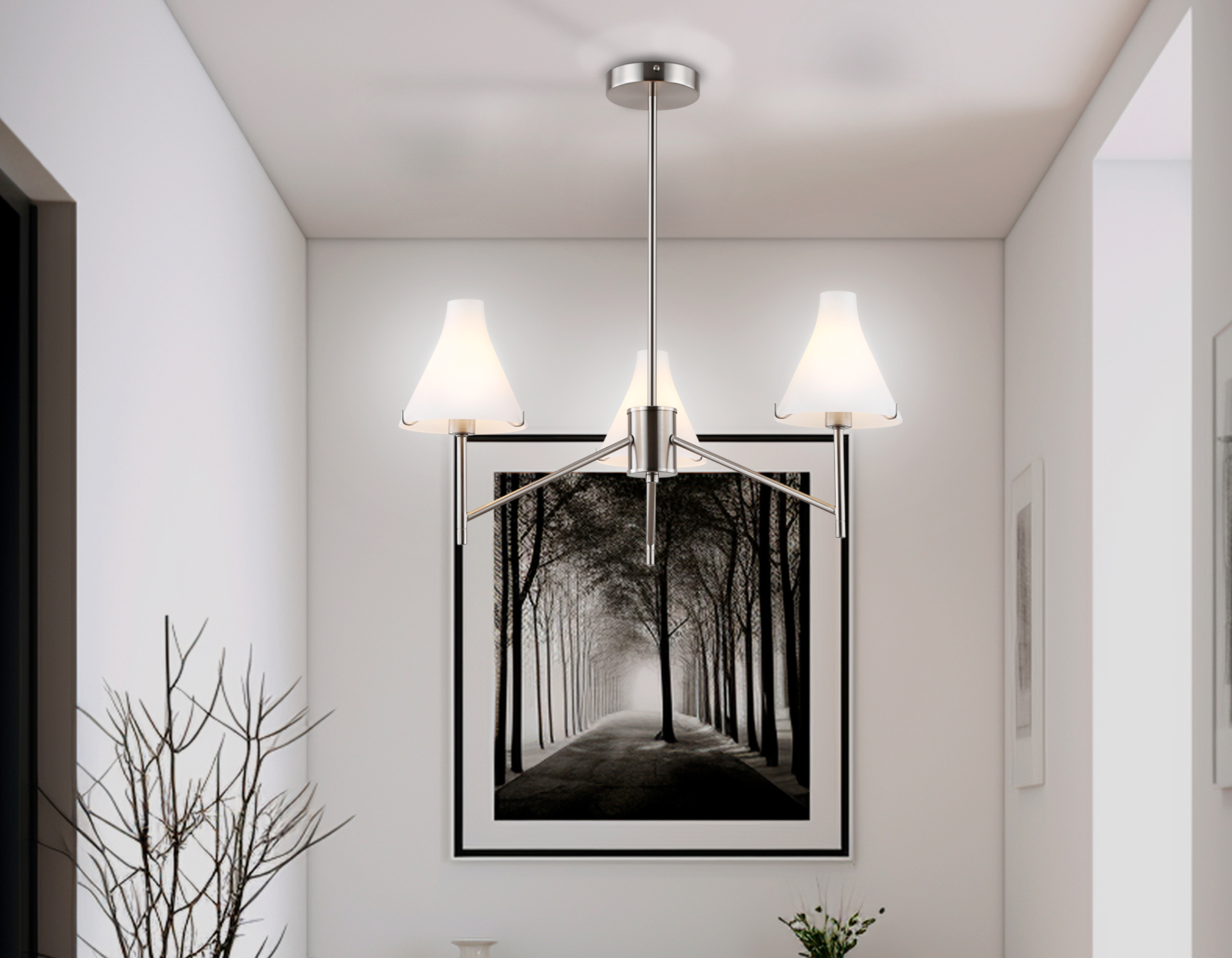 LH57121/3 SN/FR никель/белый матовый E14/3 max 40W D650*590