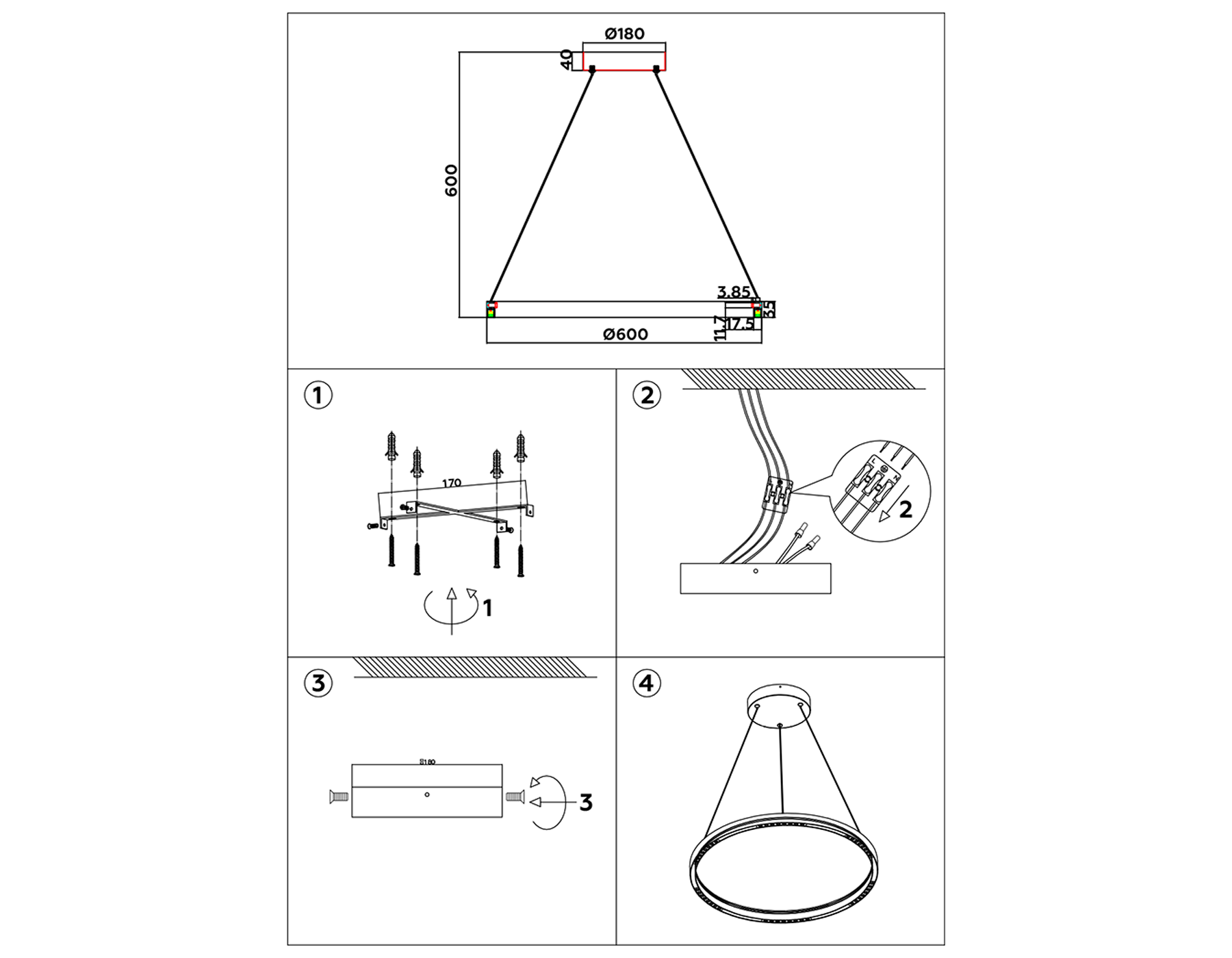 - Высота люстры с тросом: