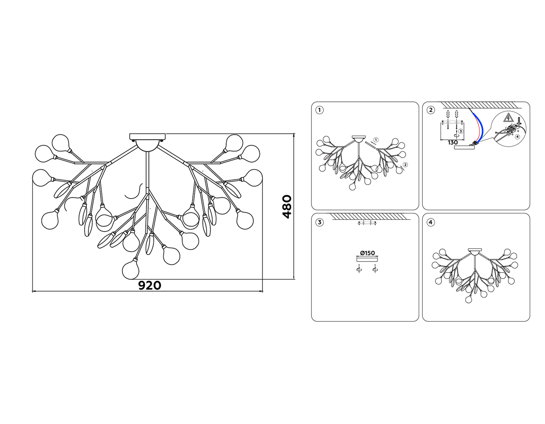 - Диаметр потолочной чаши: