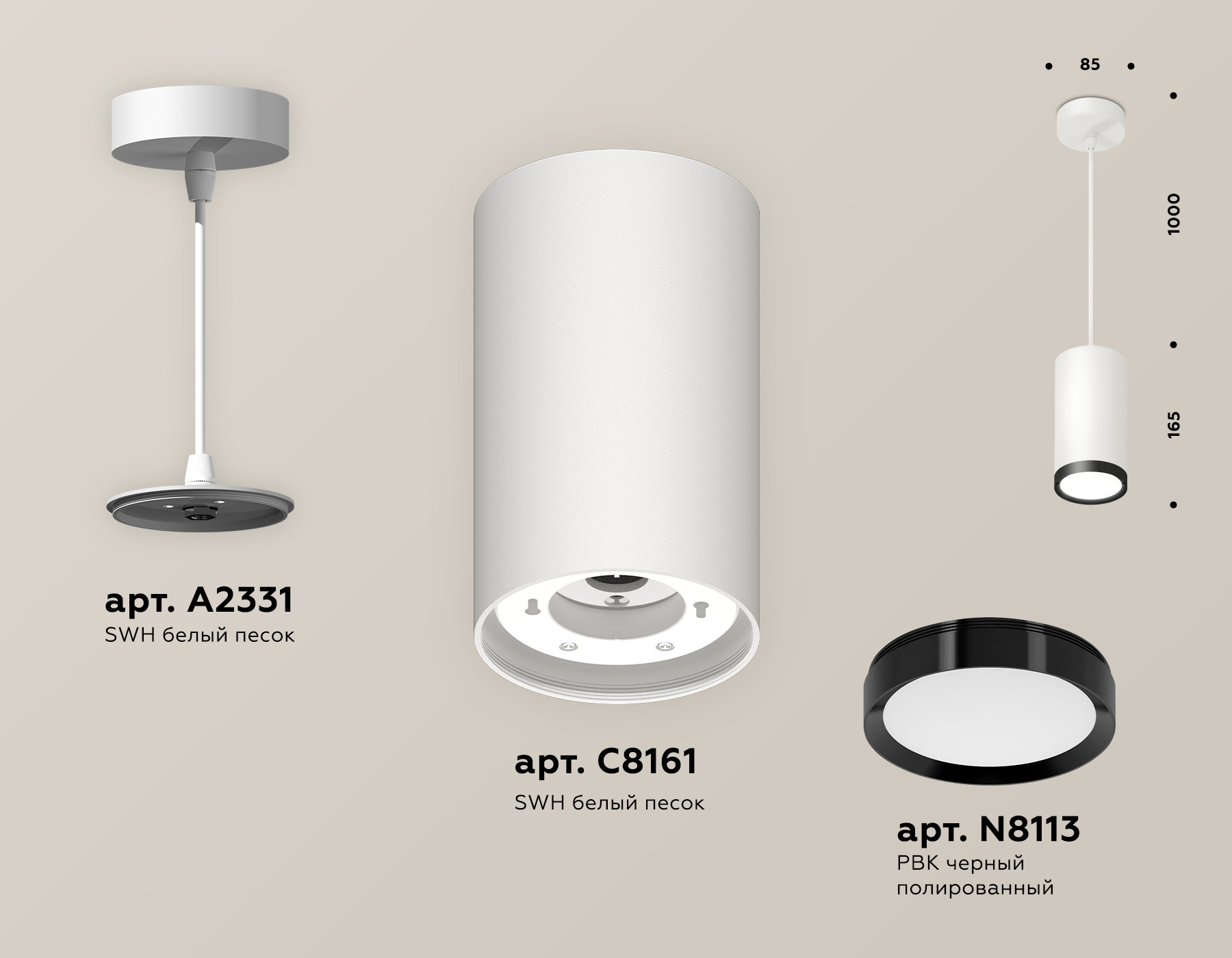- крепеж подвесной D85, корпус накладной D85, насадка передняя D85