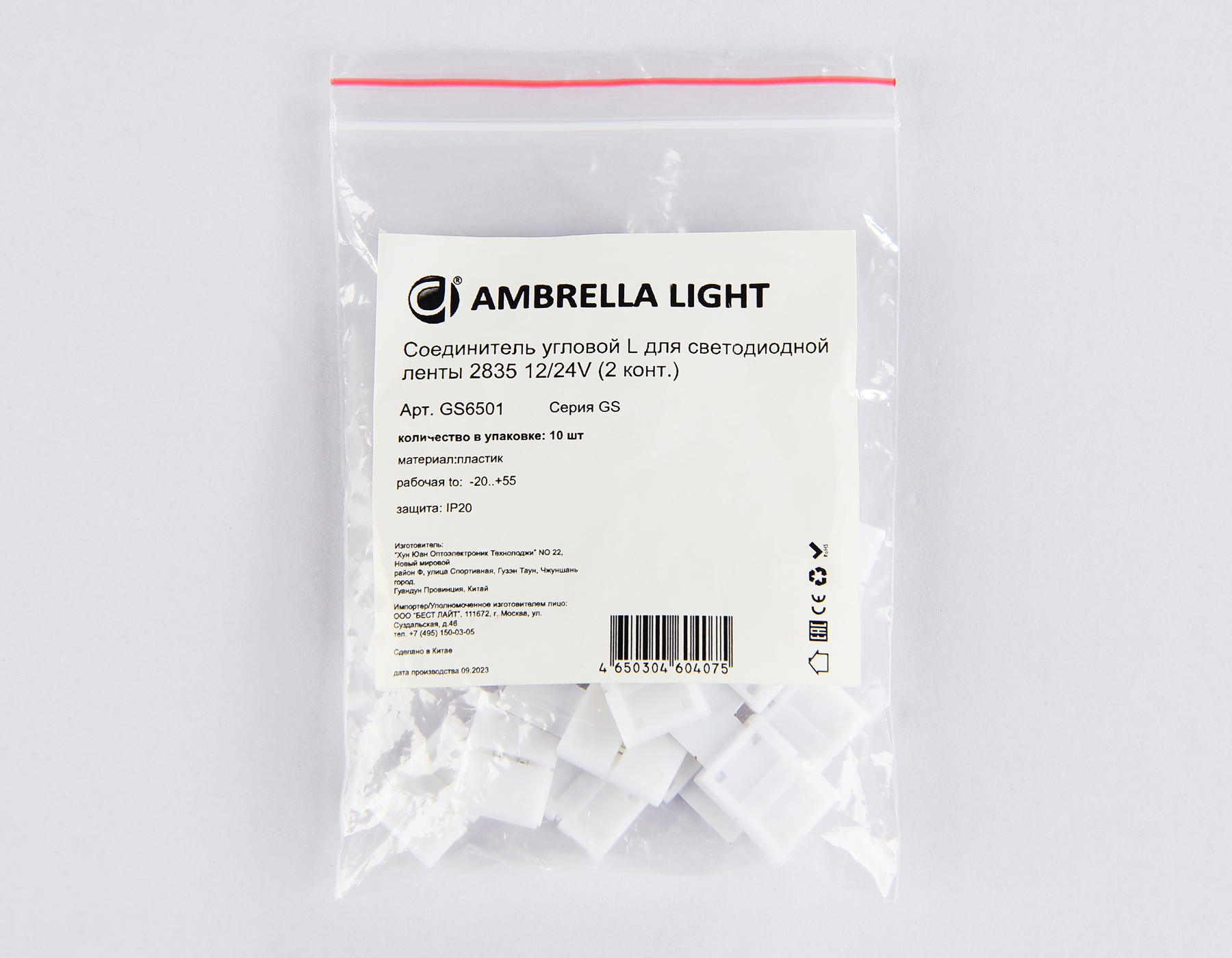 Соединитель угловой L для светодиодной ленты 2835 12/24V (2 конт.) GS6501 (10шт)