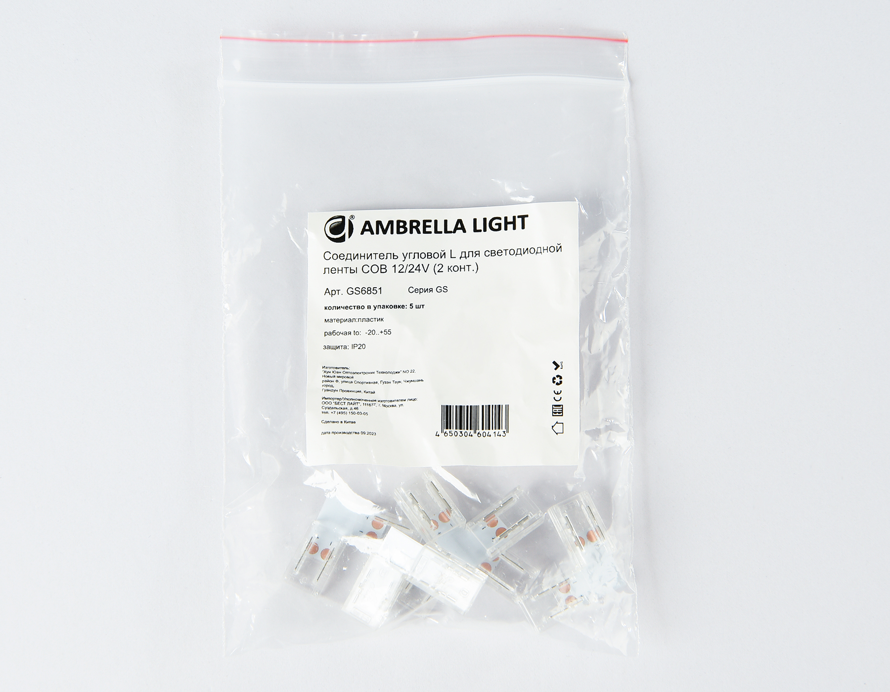 GS6851 Соединитель угловой L COB 12/24V для лент 8mm (2 конт.) (5шт)