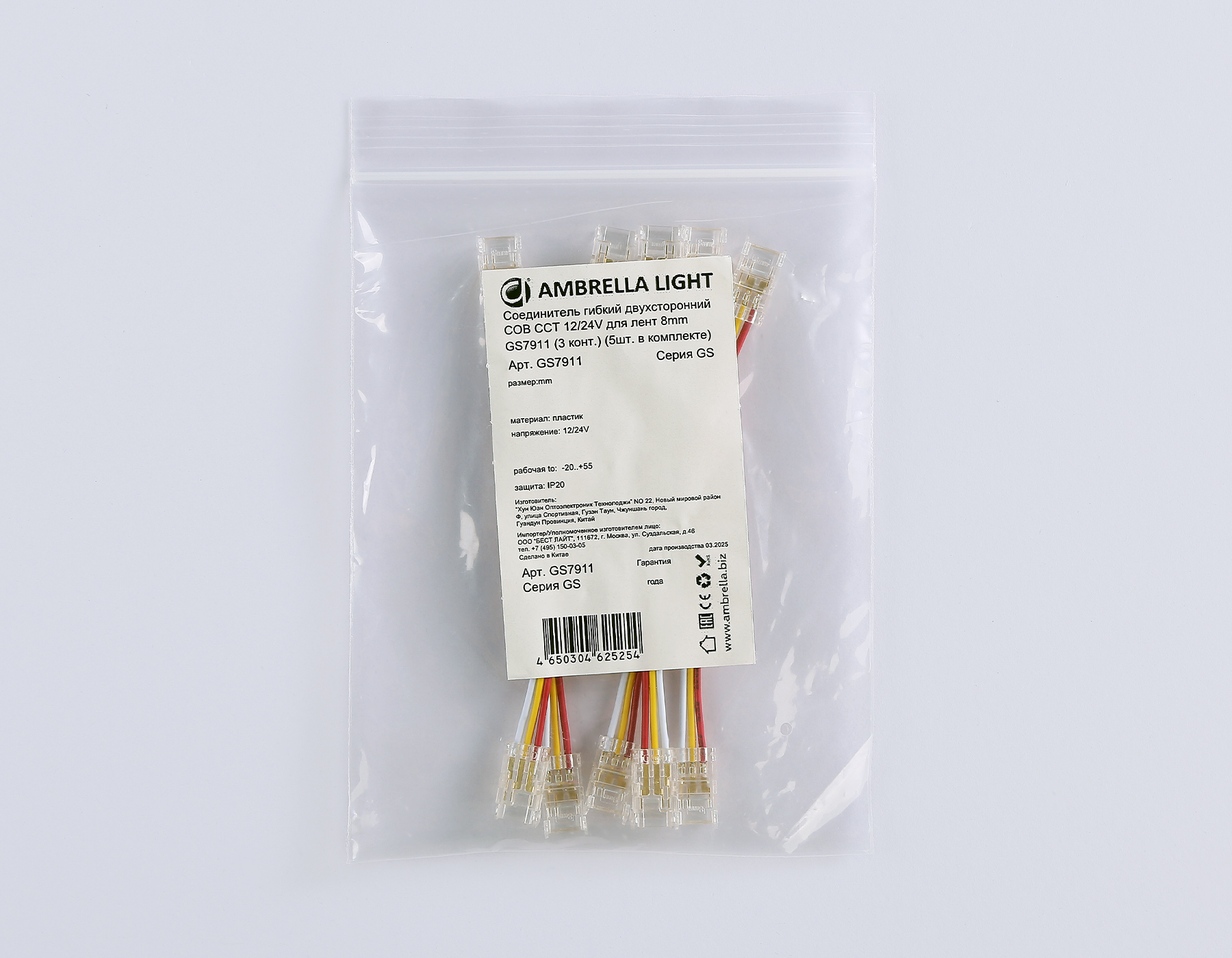 Соединитель гибкий двухсторонний COB CCT 12/24V для лент 8mm GS7911 (3 конт.) (5шт. в комплекте)
