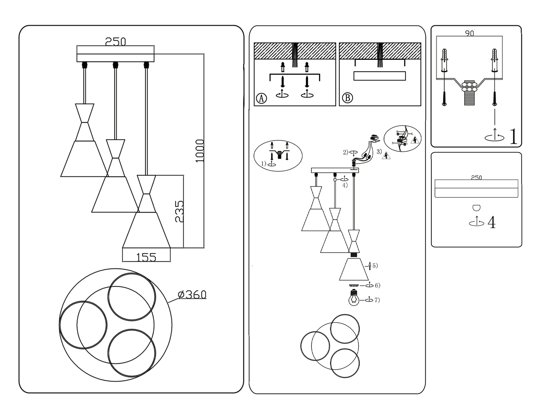 - Высота люстры с тросом: