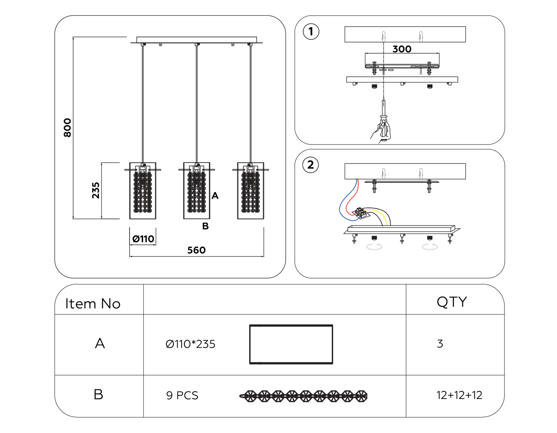 - Высота люстры с тросом: