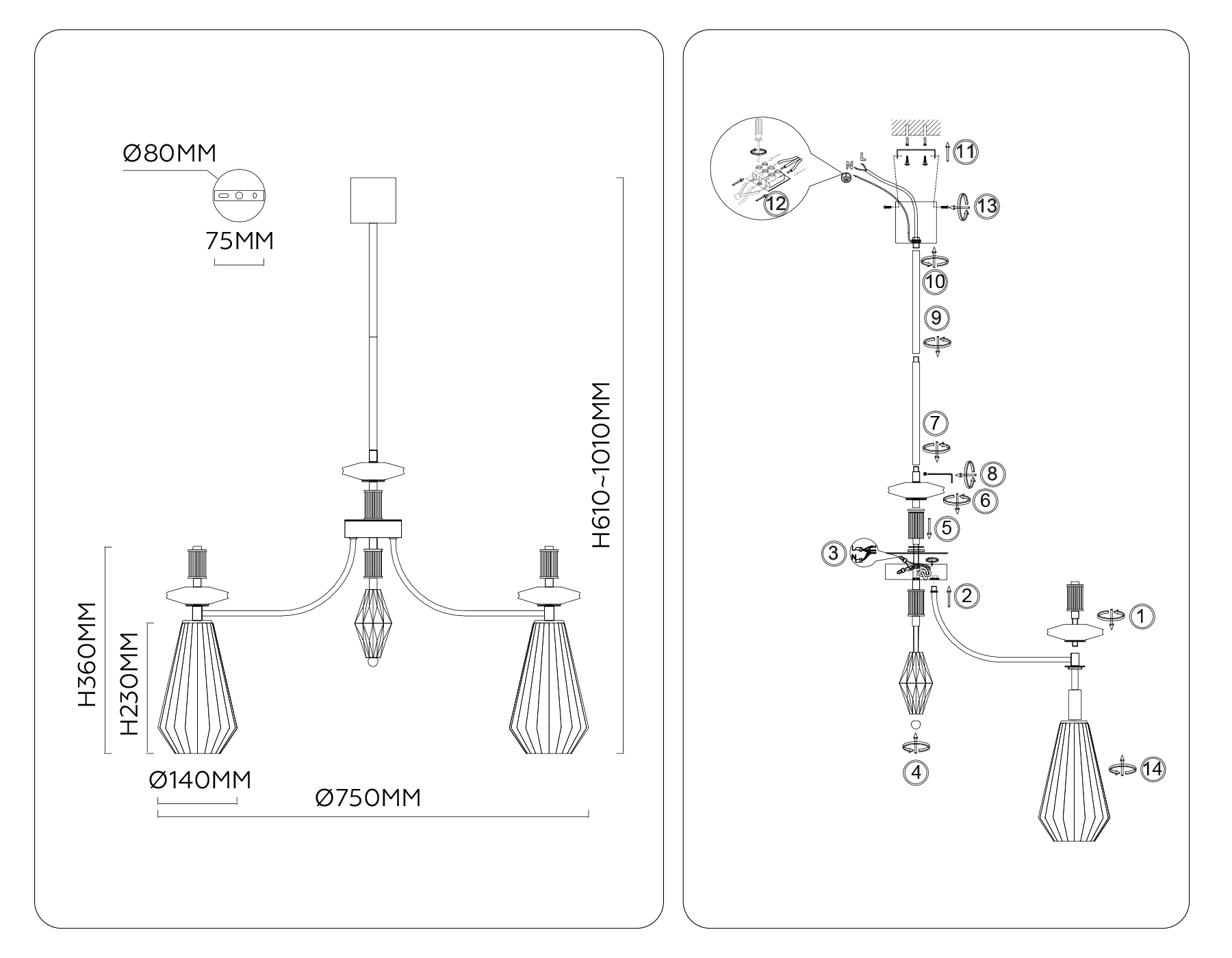 - Высота люстры с тросом: