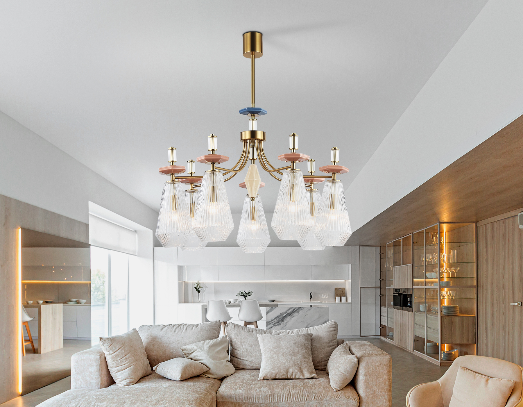 Люстра на штанге с керамикой
