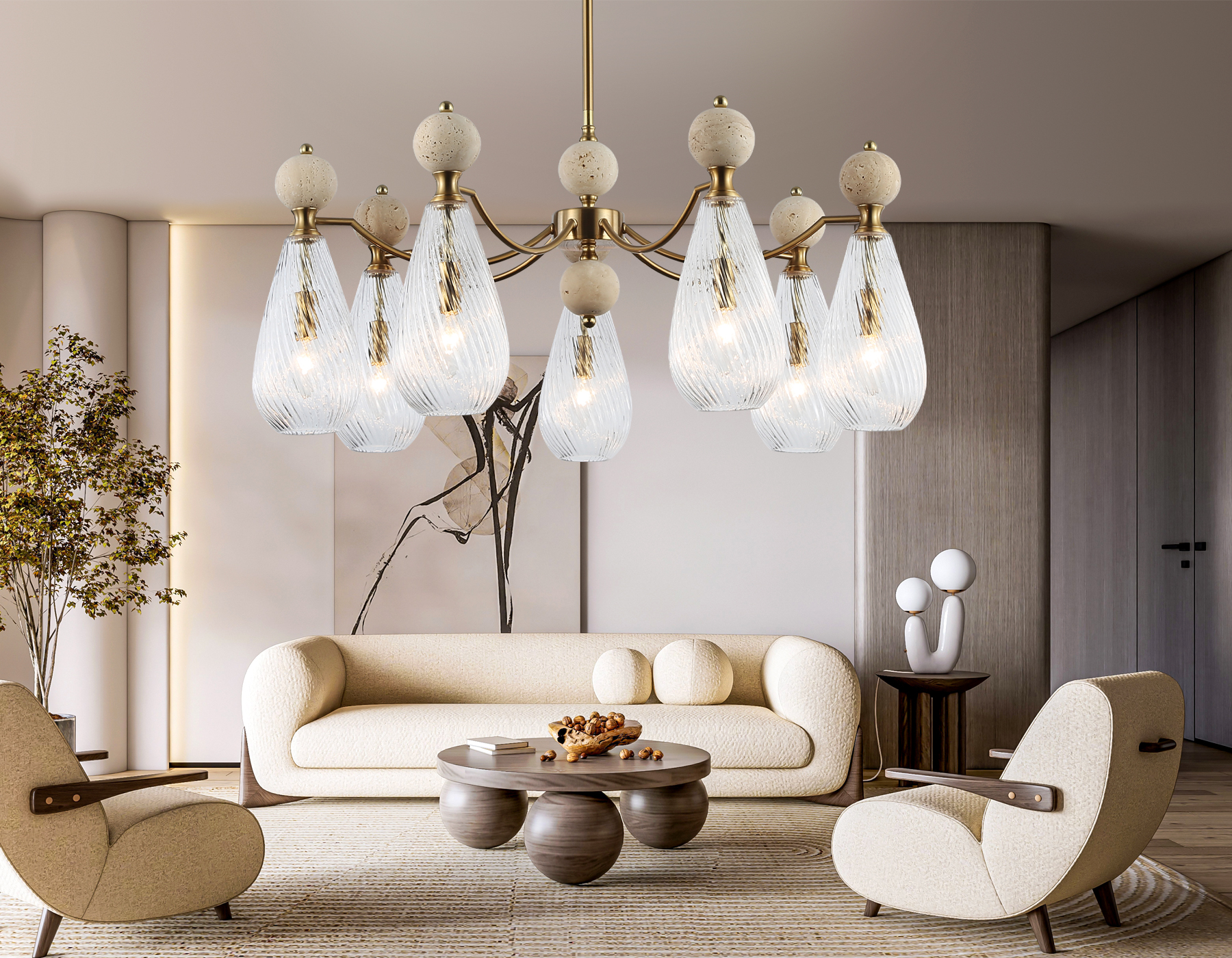 Люстра на штанге с травертином