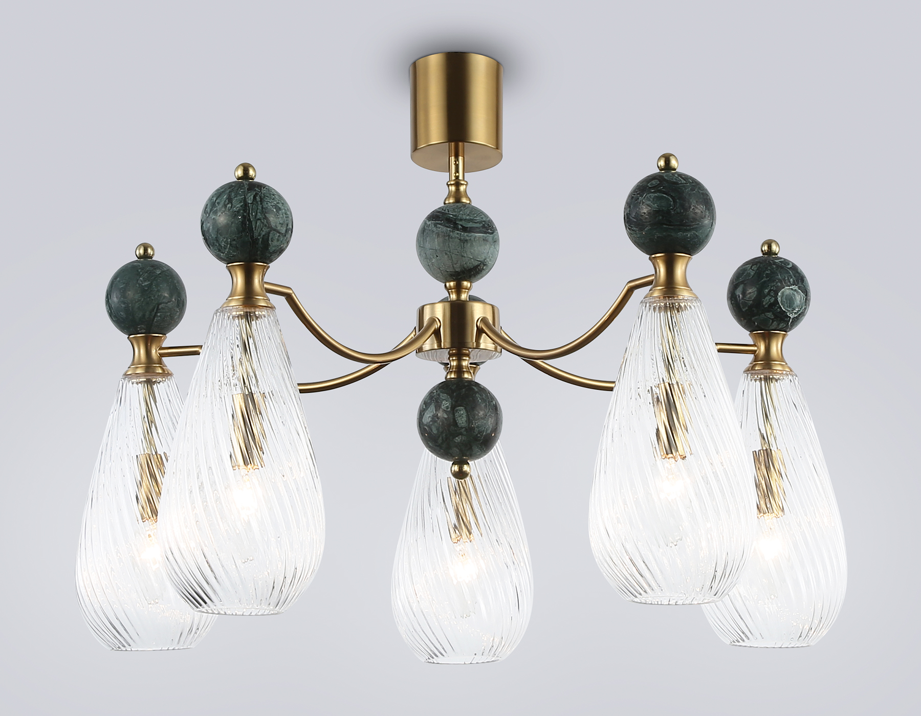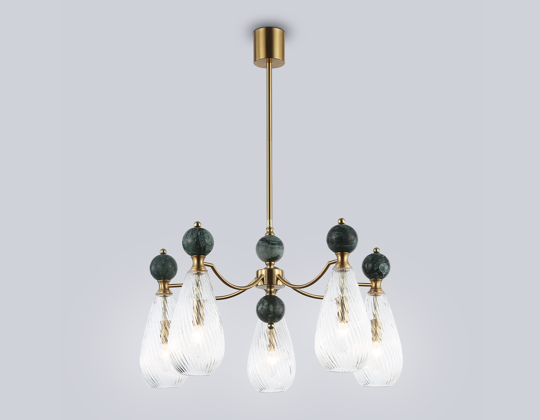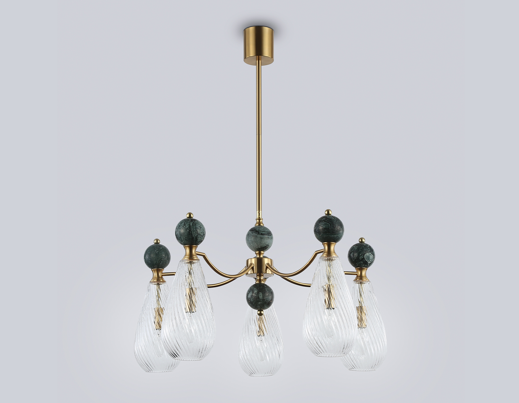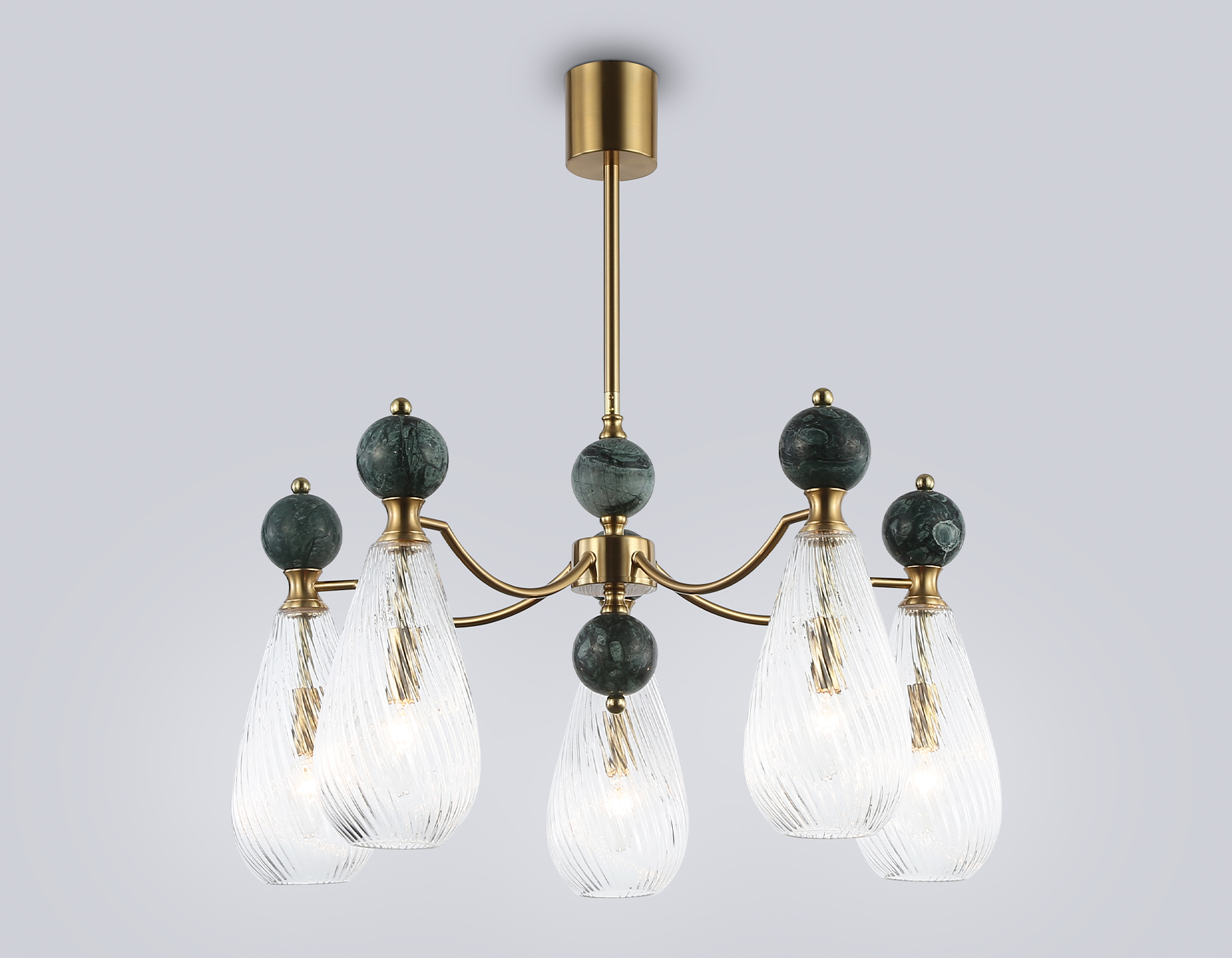 Люстра на штанге с мрамором из коллекции HIGH LIGHT. Модель LH53292 представлена в стиле неоклассика. Люстра выполнена из металлического каркаса цвета латунь, стеклянных плафонов и декорирована элементами из мрамора зеленого цвета. Для данной модели подойдут лампы с цоколем Е14. Люстра будет прекрасным дополнением в любом помещении.