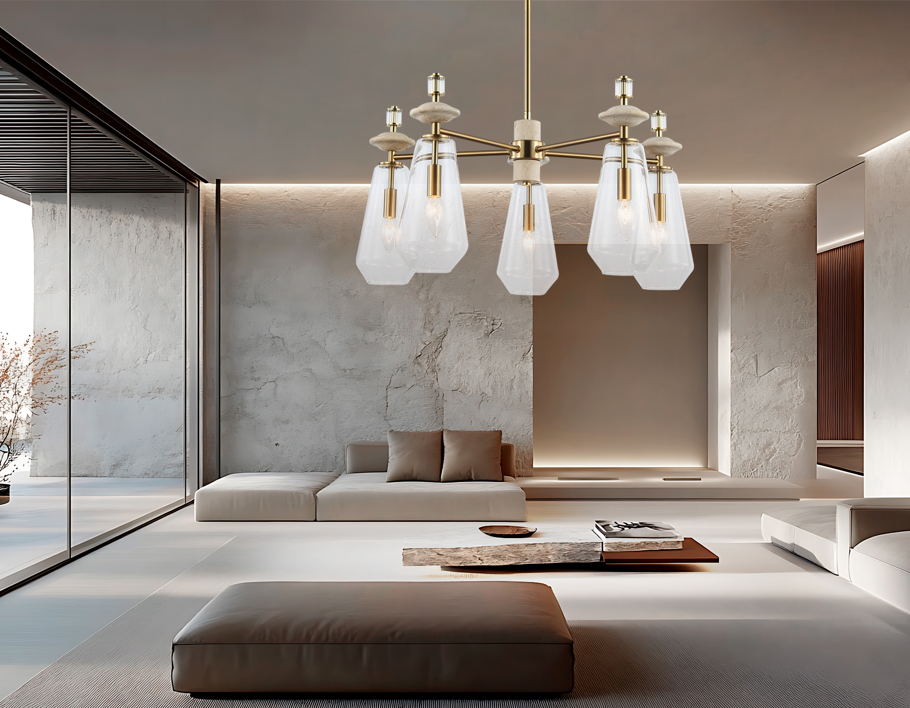 Люстра на штанге с травертином