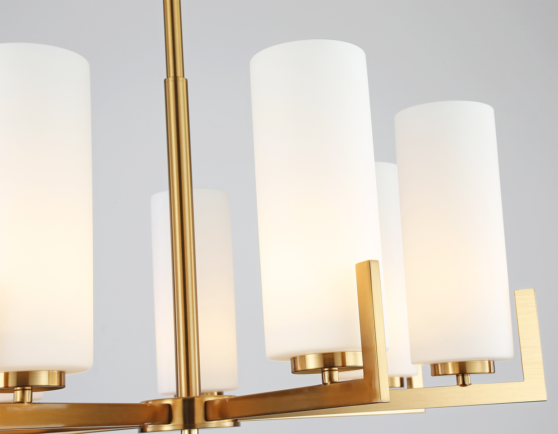 Люстра на штанге из коллекции HIGH LIGHT. Модель LH56064 представлена в современном стиле модерн. Светильник выполнен из металлического каркаса цвета латунь и белых стеклянных плафонов. Для данной модели подойдет сменная лампа с цоколем Е27. Светильник будет прекрасным дополнением в любом помещении.