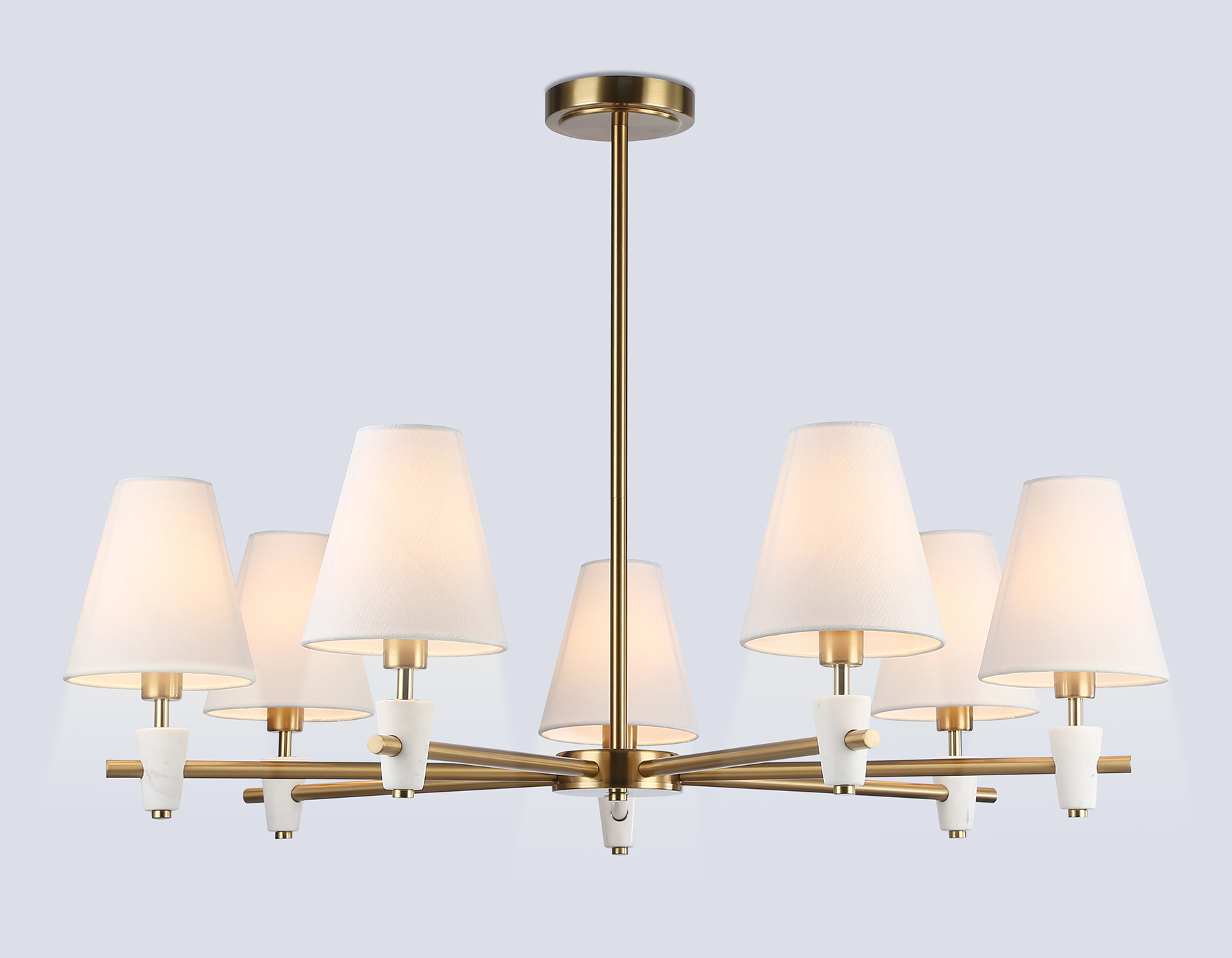 Люстра на штанге с абажурами и мрамором