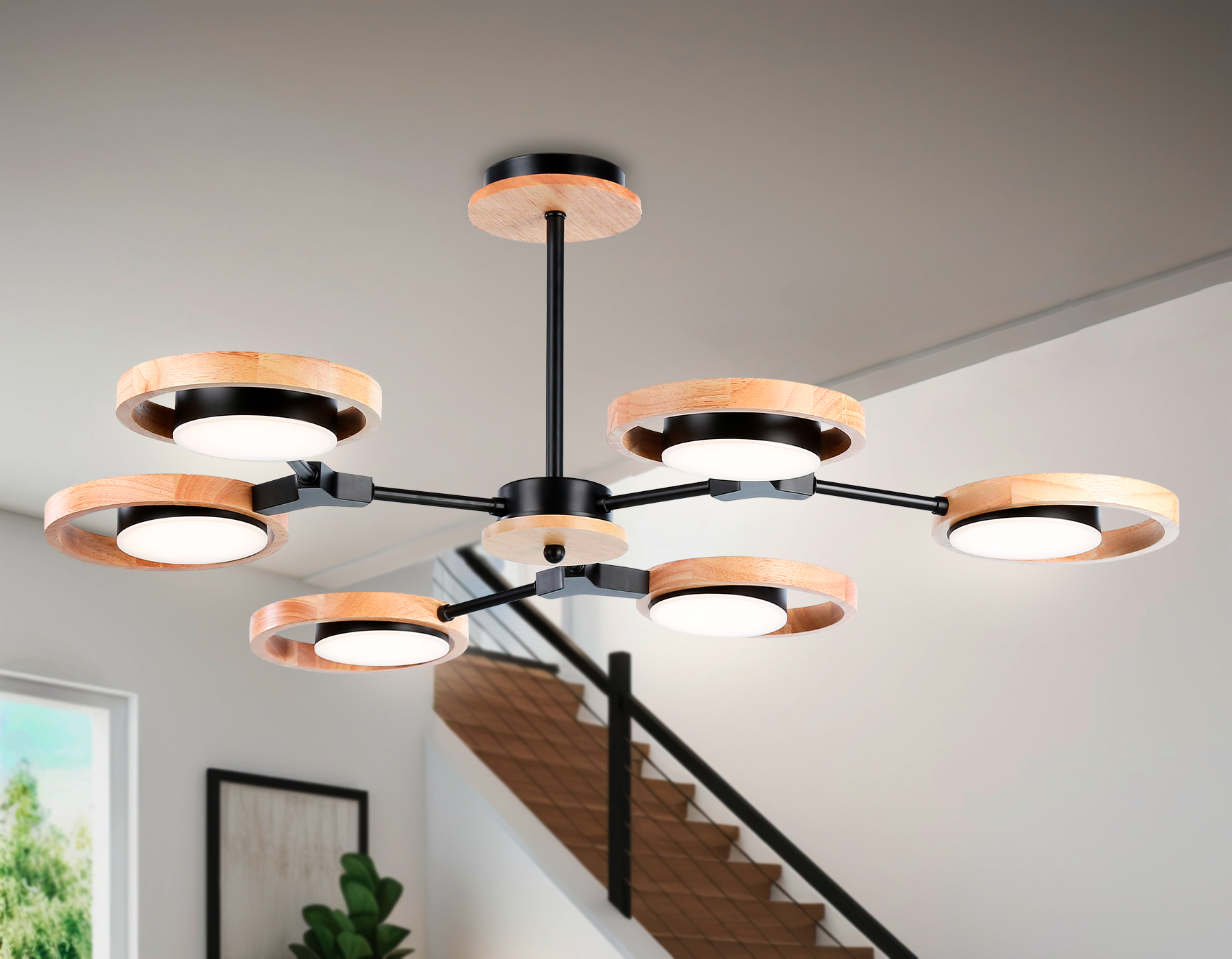 FL51619/6 BK/LW черный/светлое дерево 3000K/4200K/6400K 42W D825*285 (Без ПДУ)