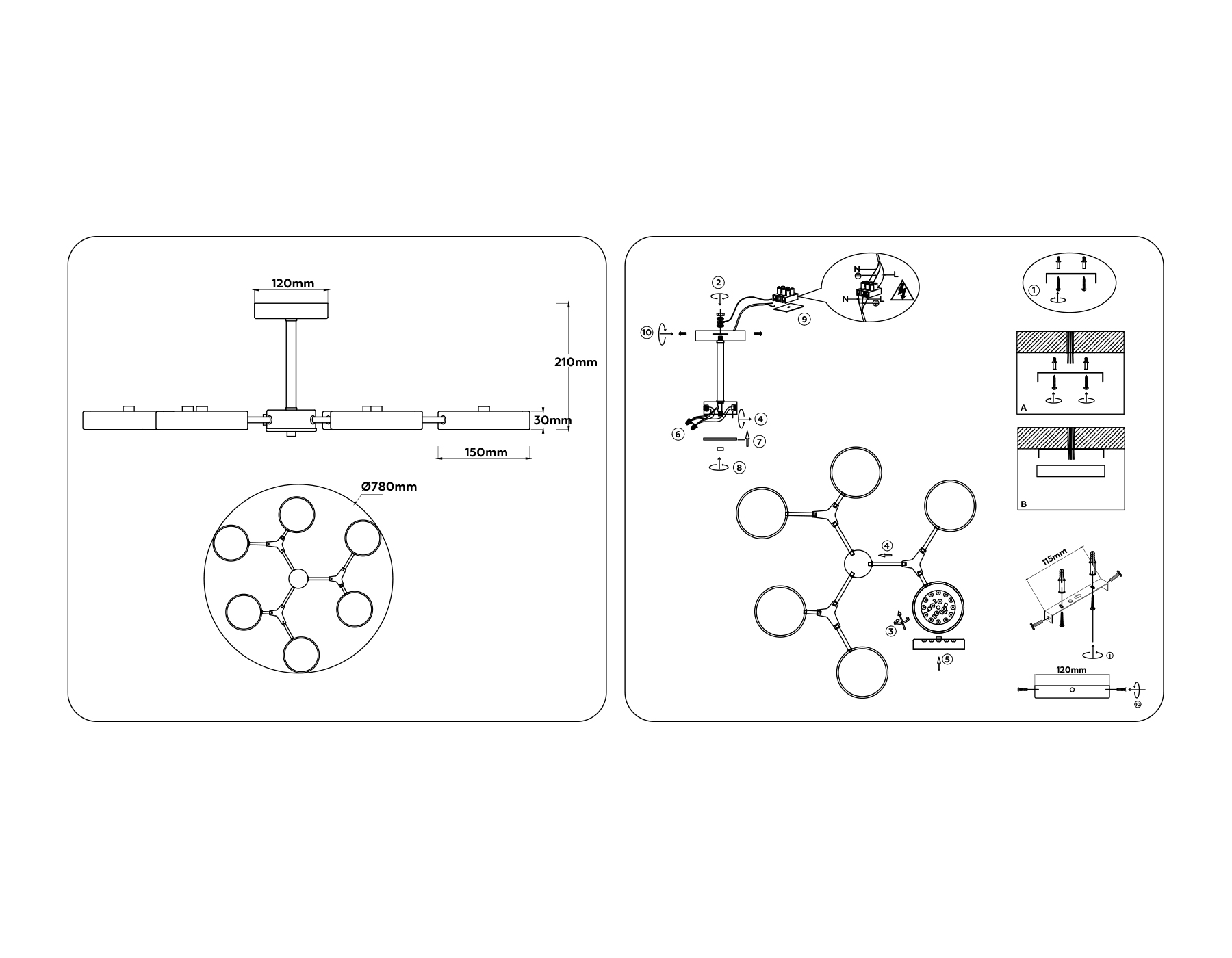- Тип крепления светильника: