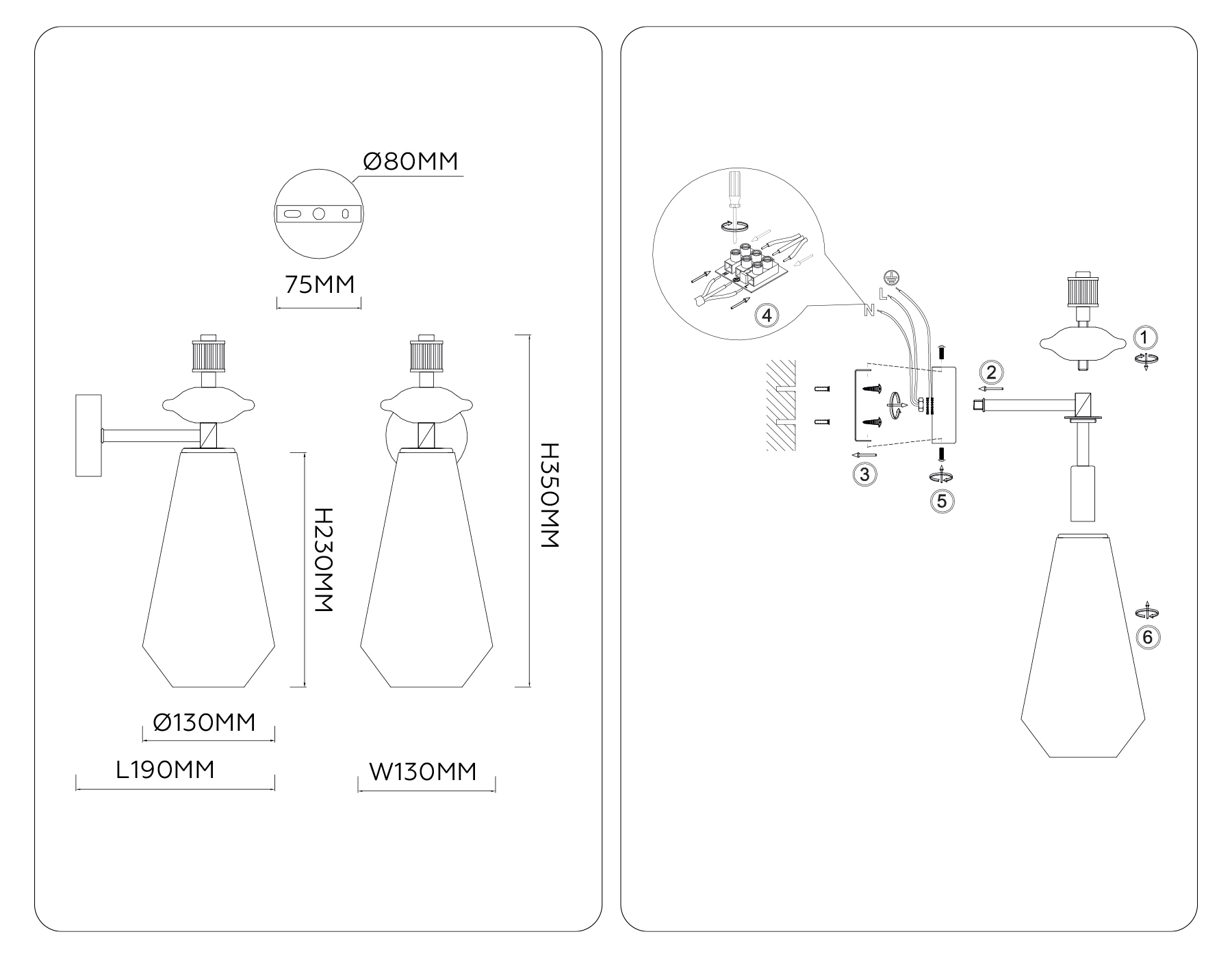 Настенный светильник с травертином