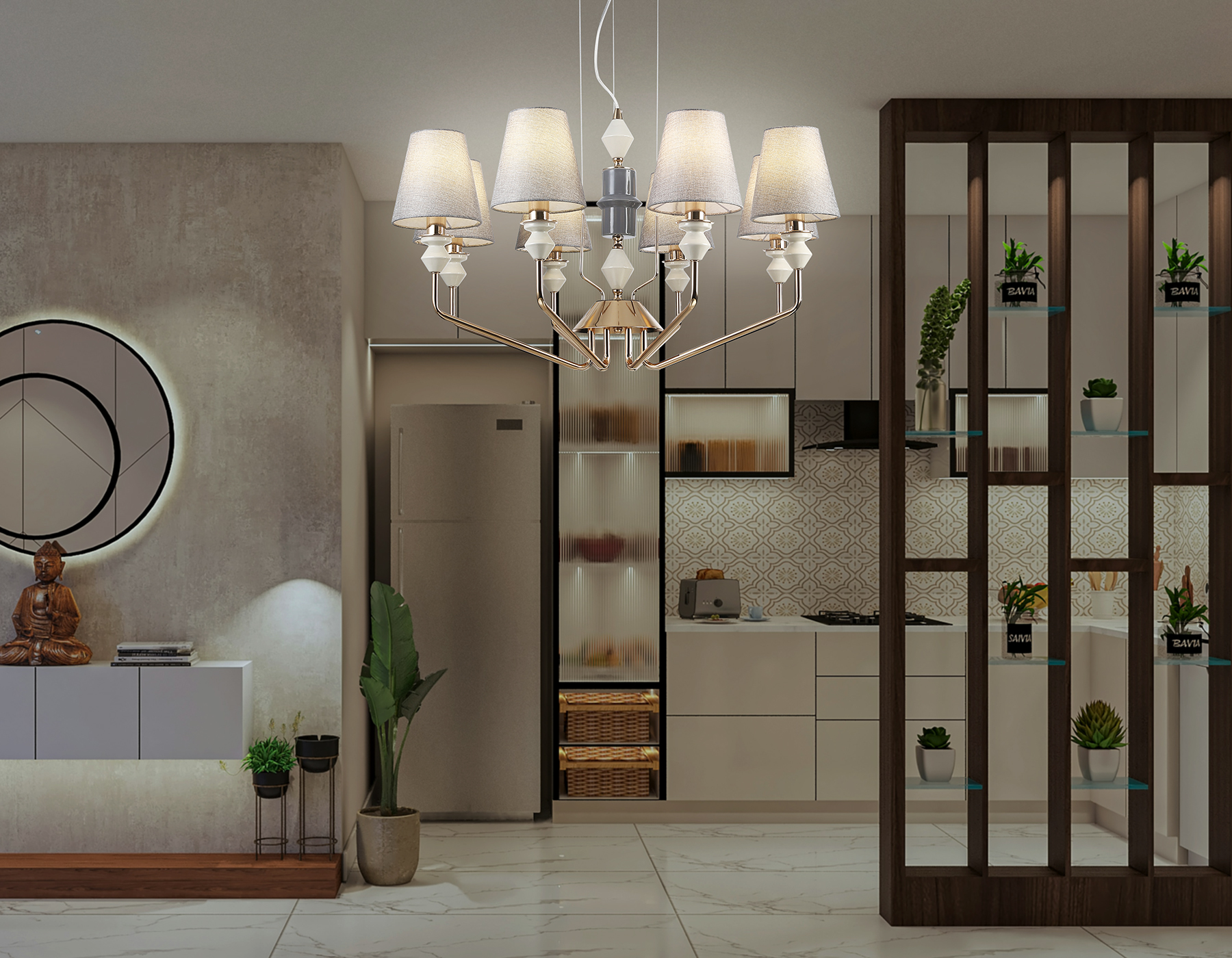 Подвесная люстра с абажурами
