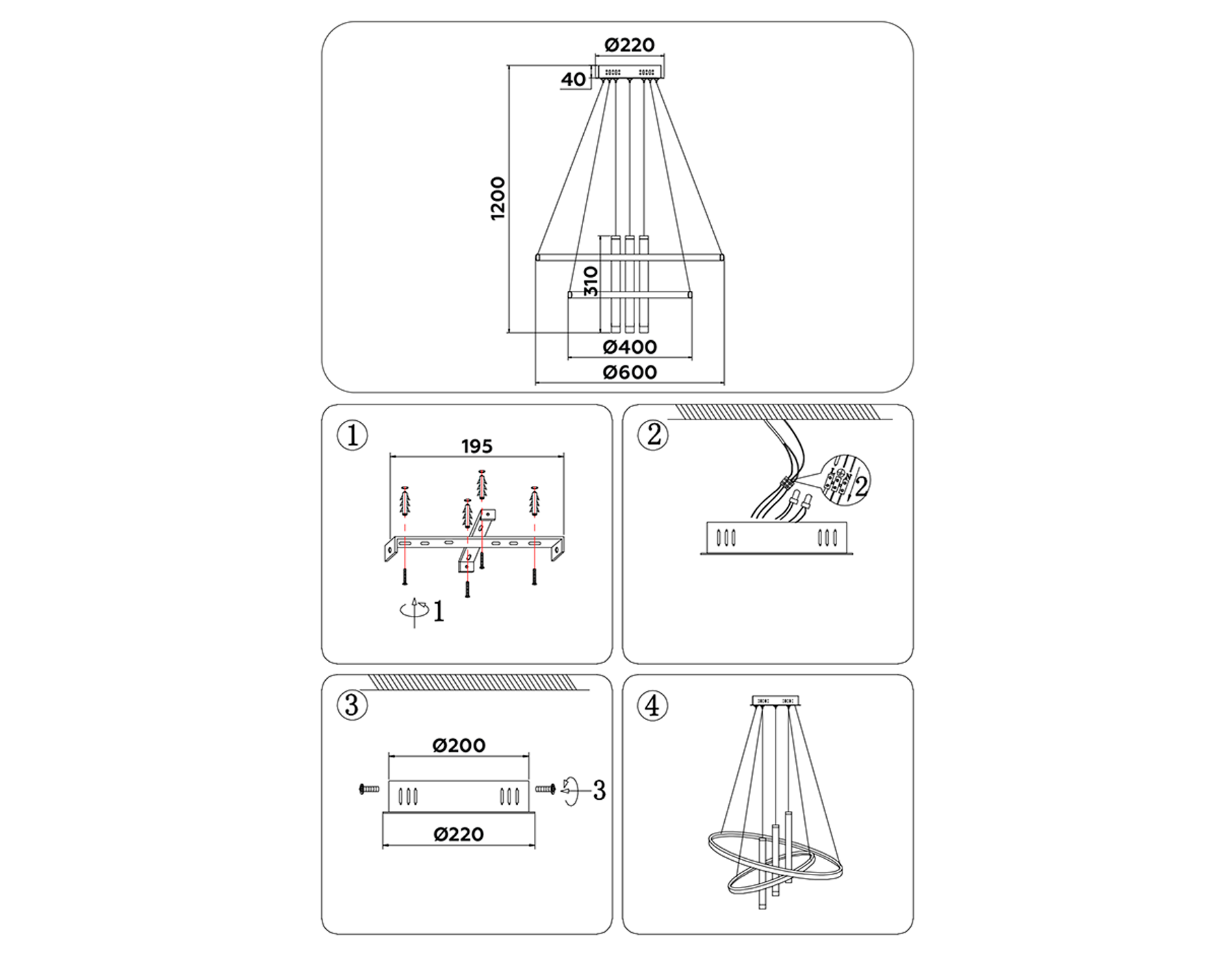 - Высота люстры с тросом: