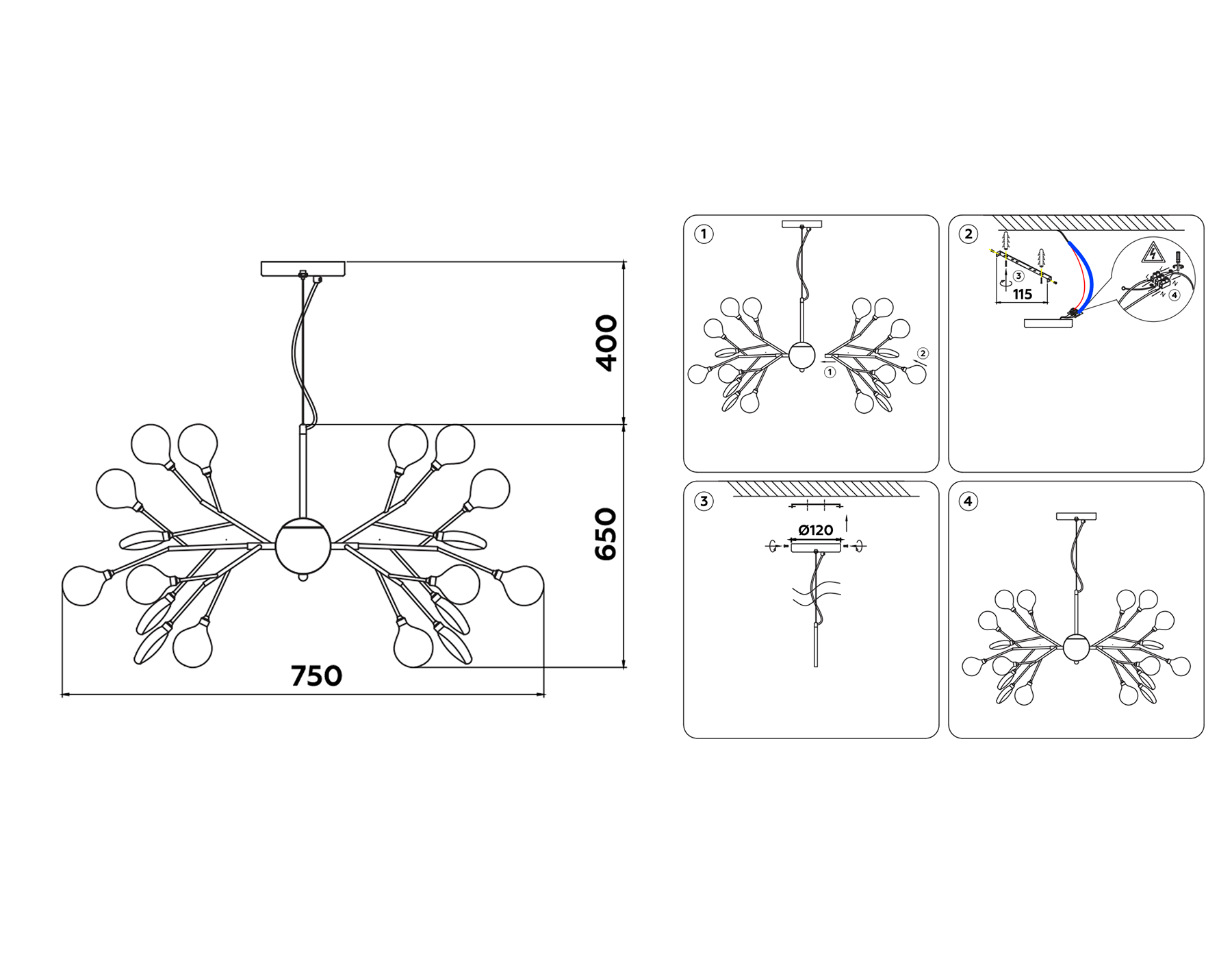 - Высота люстры с тросом: