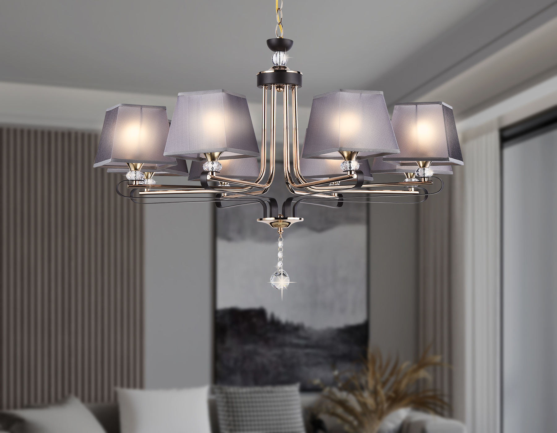 Подвесная люстра с абажуром и хрусталем