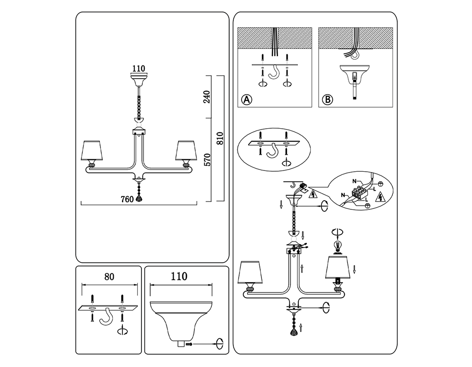 - Высота люстры с тросом: