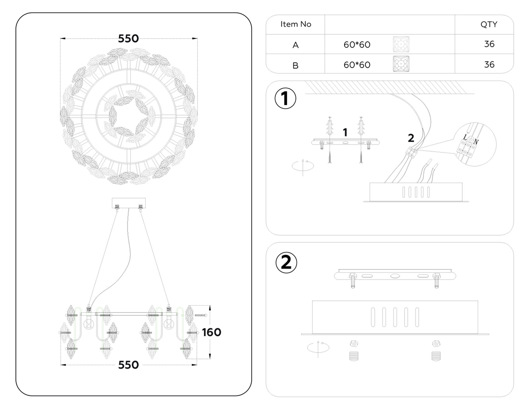 - подвесная люстра (лампа не в комплекте)