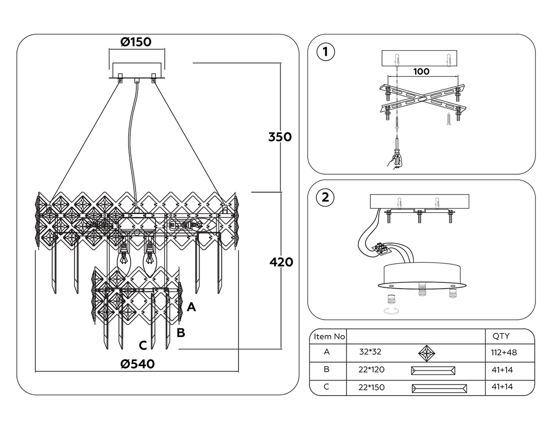 - подвесная люстра (лампа не в комплекте)