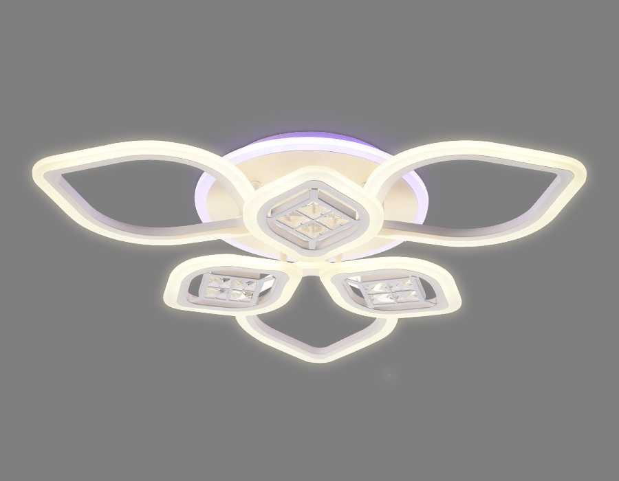 Потолочный светодиодный светильник из коллекции ACRYLICA Ice. Великолепная модель FA282 выполнена в современном стиле Неоклассика. Бесподобный хрустальный декор придает особый шик светильникам этой коллекции. Эта модель цветочной формы, металлический корпус, с вставками из акрила. Благодаря встроенным в конструкцию светодиодам, вы можете с уверенностью забыть о поиске или замене дополнительных ламп. С помощью мобильного приложения, а так же радиоуправляемого пульта вы сможете регулировать цветовую температуру, яркость освещения и ночной режим. Эта модель подходит для натяжных потолков и будет прекрасным дополнением в гостиной, спальне или детской комнате.