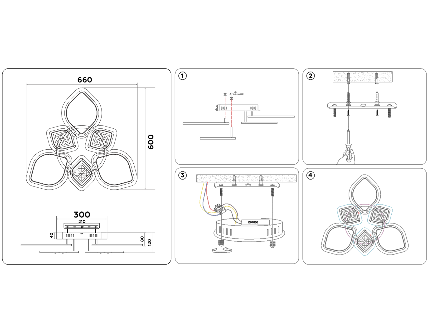 - Диаметр потолочной чаши: