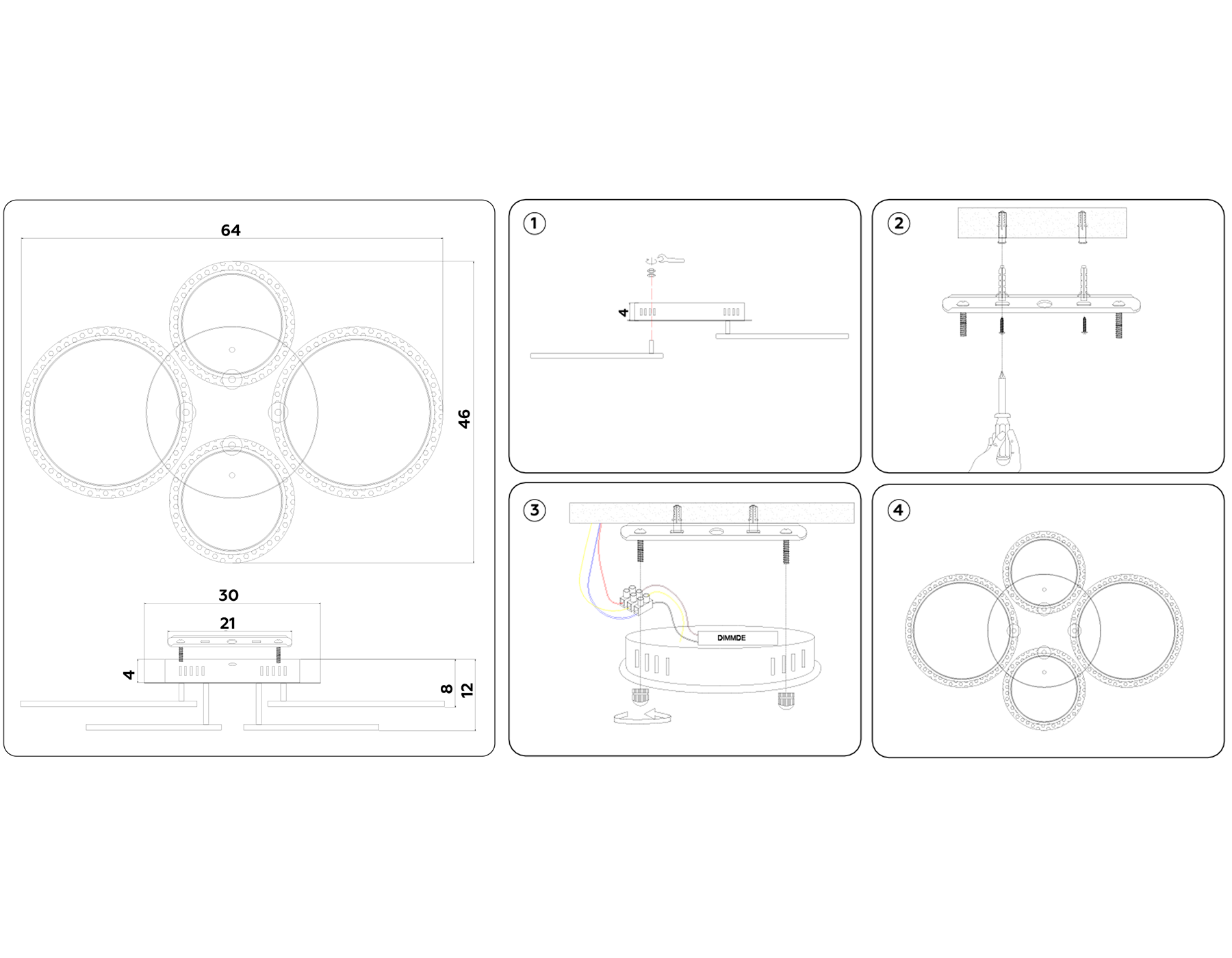 - Диаметр потолочной чаши: