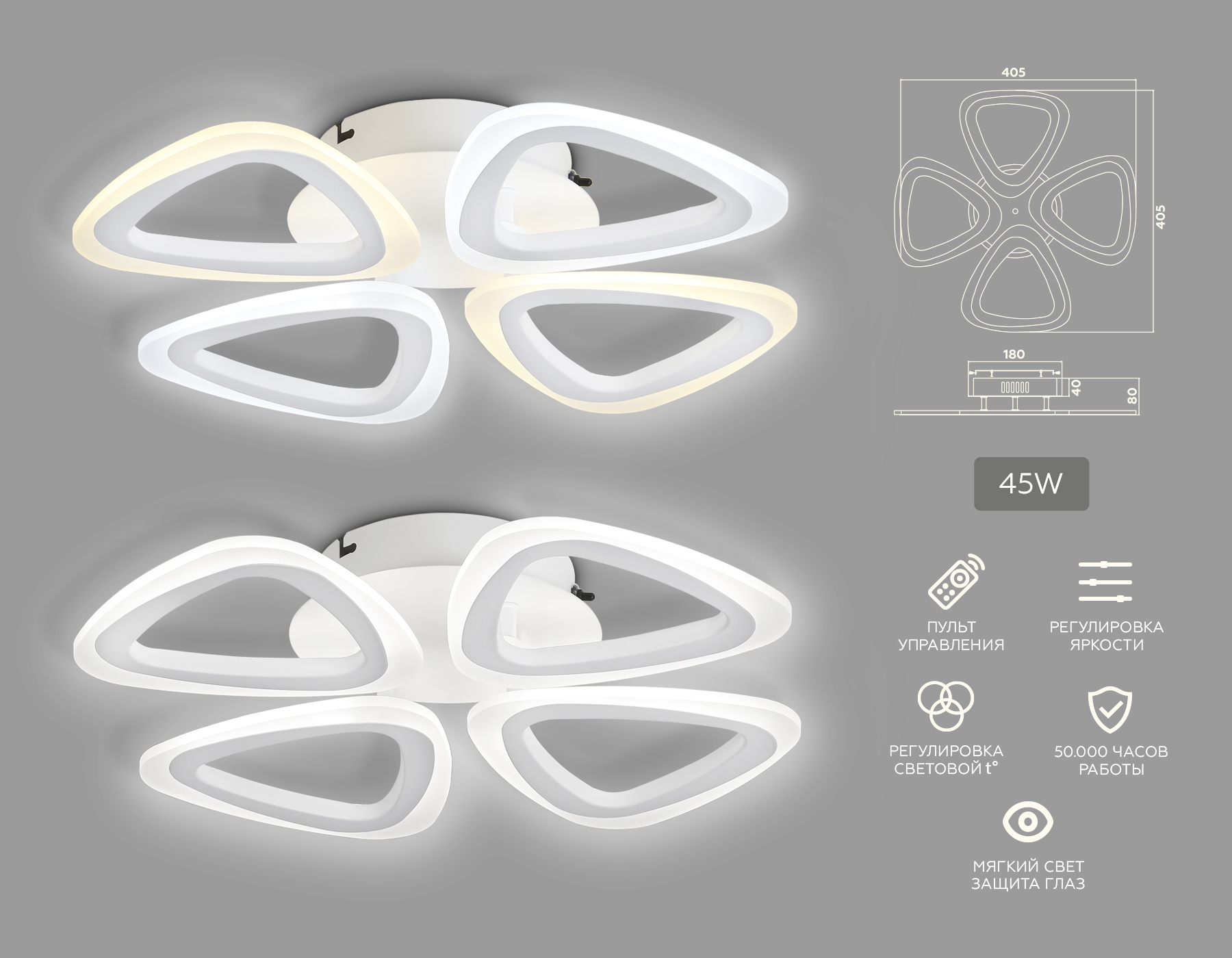 FA4482/4 WH белый 4200K/3000K+6400K/6400K+3000K 45W 405*405*80 (ПДУ ИК)