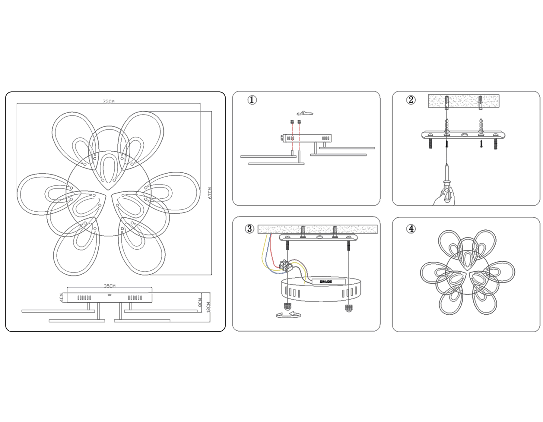 - Диаметр потолочной чаши: