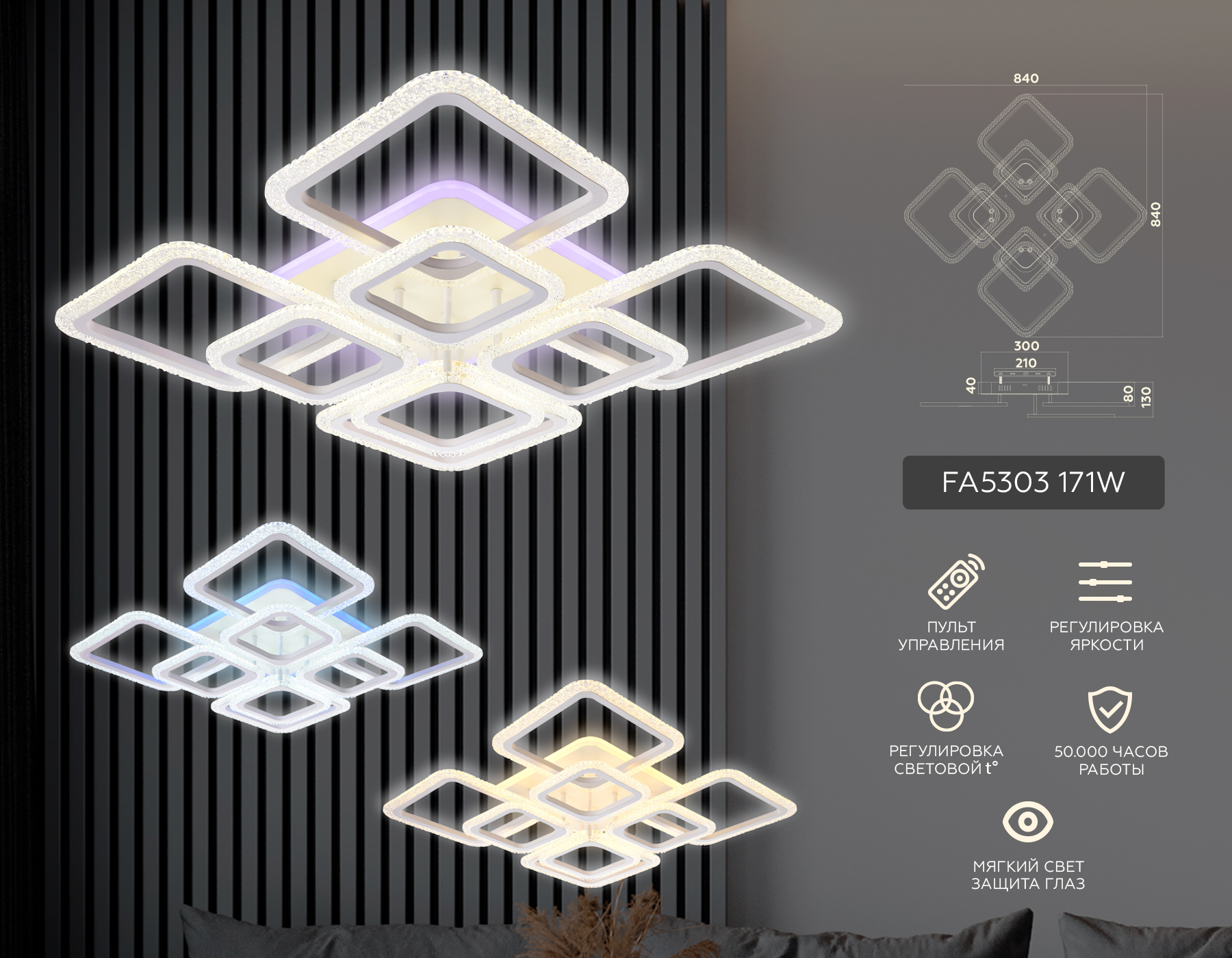 FA5303 WH белый 171W 840*840*130 (ПДУ РАДИО 2.4)
