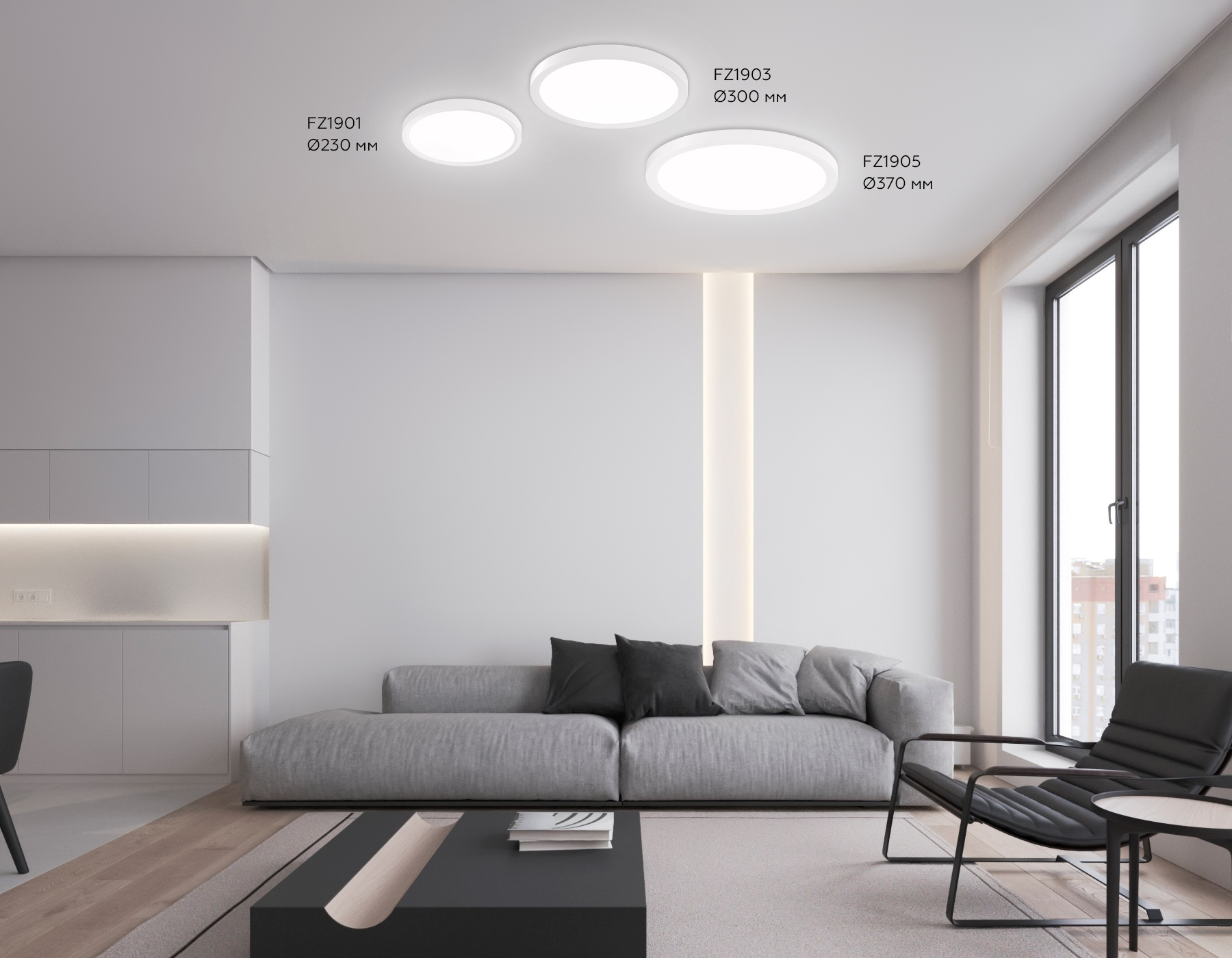 FZ1905 WH белый IP54 26W 3000K-6500K CCT-переключатель D370*25 (Без ПДУ)