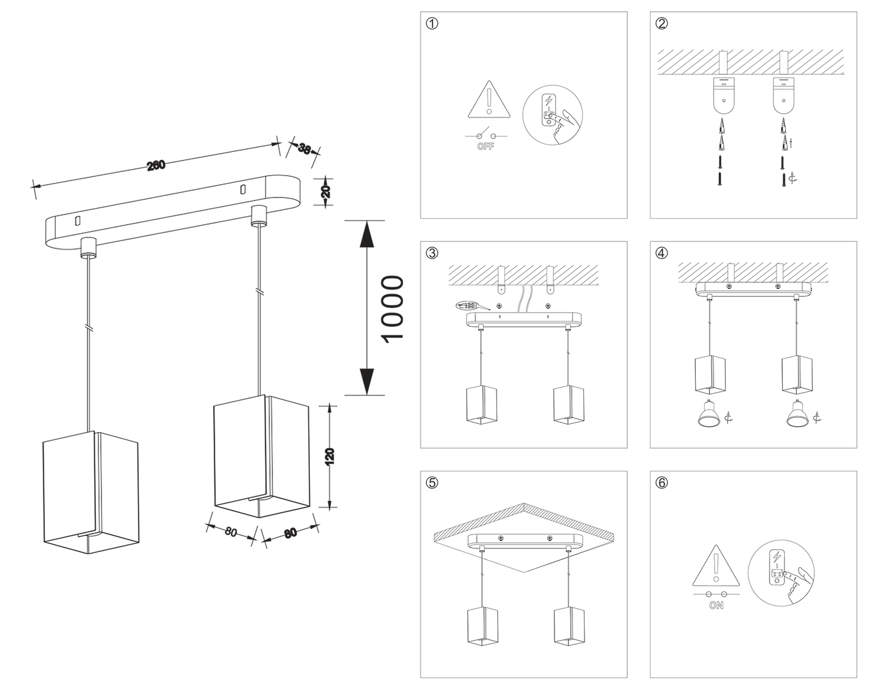 - Высота люстры с тросом:
