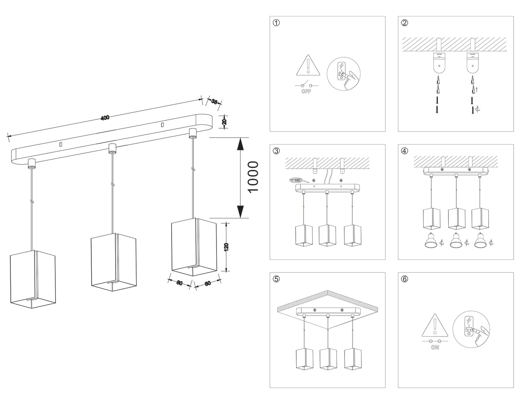 - Высота люстры с тросом: