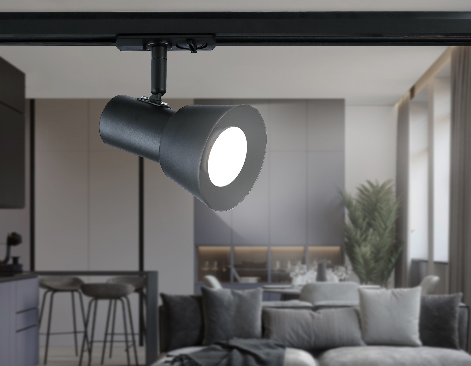 Трековые светильники коллекции TRACK SYSTEM подходят для создания индивидуального акцента освещения в любых помещениях. Поворотный механизм позволит направить освещение под любым нужным вам углом. Для данных светильников подойдет лампа с цоколем GU10