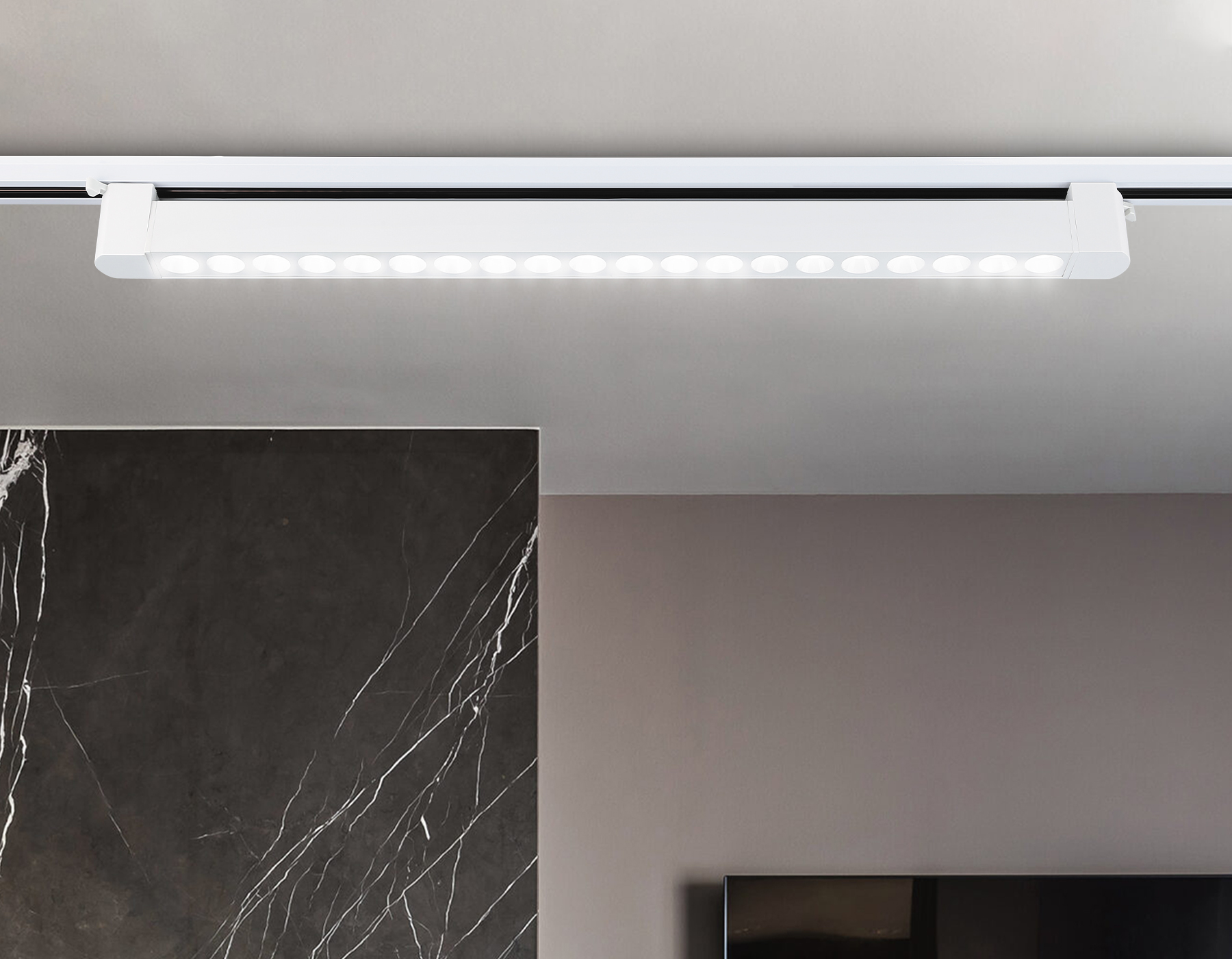 Светодиодные трековые светильники коллекции TRACK SYSTEM подходят для создания индивидуального акцента освещения в любых помещениях. Поворотный механизм позволит направить освещение под любым нужным вам углом.